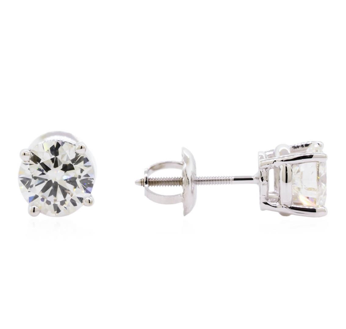 One pair electronically tested 14KT white gold lady's combination cast & assembled stud earrings with threaded posts and screw-on/screw-off backs with a bright polish finish. Identified with markings of "14K". Condition is new, good workmanship. Containing: Two prong set round brilliant cut diamonds, measuring 5.80 - 5.73 x 3.46mm (depth est.) approximate total weight of 2 Stones = 1.40ct. Graded in the setting. Clarity: VS-2 to SI-1. Color: H - I. Cut Good. Total Weight of Diamonds 1.40ct. Total Weight of Earrings 1.20gm. GAS Appraised at $12,790.00.