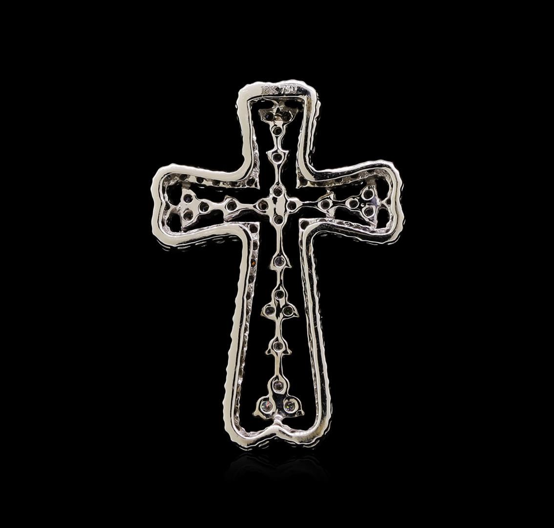 One electronically tested 18KT white gold cast cross pendant with a bright polish finish. Identified with markings of "18K 750". Condition is new, good workmanship. Containing: Ninety-Six prong set round brilliant cut diamonds, measuring 1.70 - 1.50 x 0.96mm (depth est.) approximate total weight of 96 Stones = 1.41ct. Graded in the setting. Clarity: VS-2 to SI-2. Color: H - I. Cut Very Good. Total Weight of Diamonds 1.41ct. Total Weight of Pendant 7.00gm. GAS Appraised at $5,595.00.