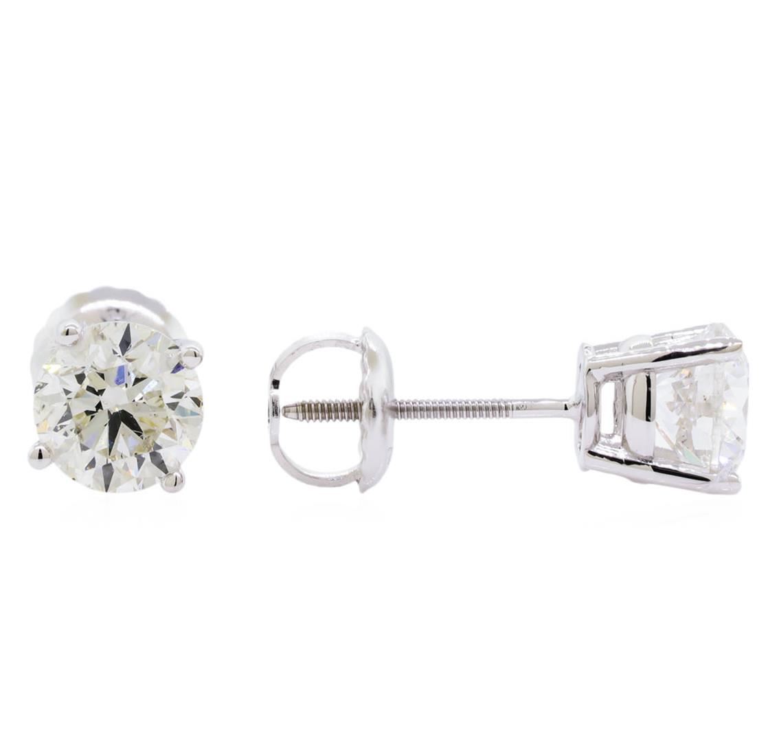 One electronically tested 14KT white gold lady's combination cast & assembled stud earrings with threaded posts and screw-on/screw-off backs with a bright polish finish. Identified with markings of "14K". Condition is new, good workmanship. Containing: Two prong set round brilliant cut diamonds, measuring 5.54 - 5.49 x 3.53mm (depth est.) , 5.00.%. GTCF approximate total weight of 2 Stones = 1.42ct. Graded in the setting. Clarity: SI-1 to SI-2. Color: H - I. Cut Good. Total Weight of Diamonds 1.42ct. Total Weight of Earrings 1.20gm. GAS Appraised at $10,840.00.