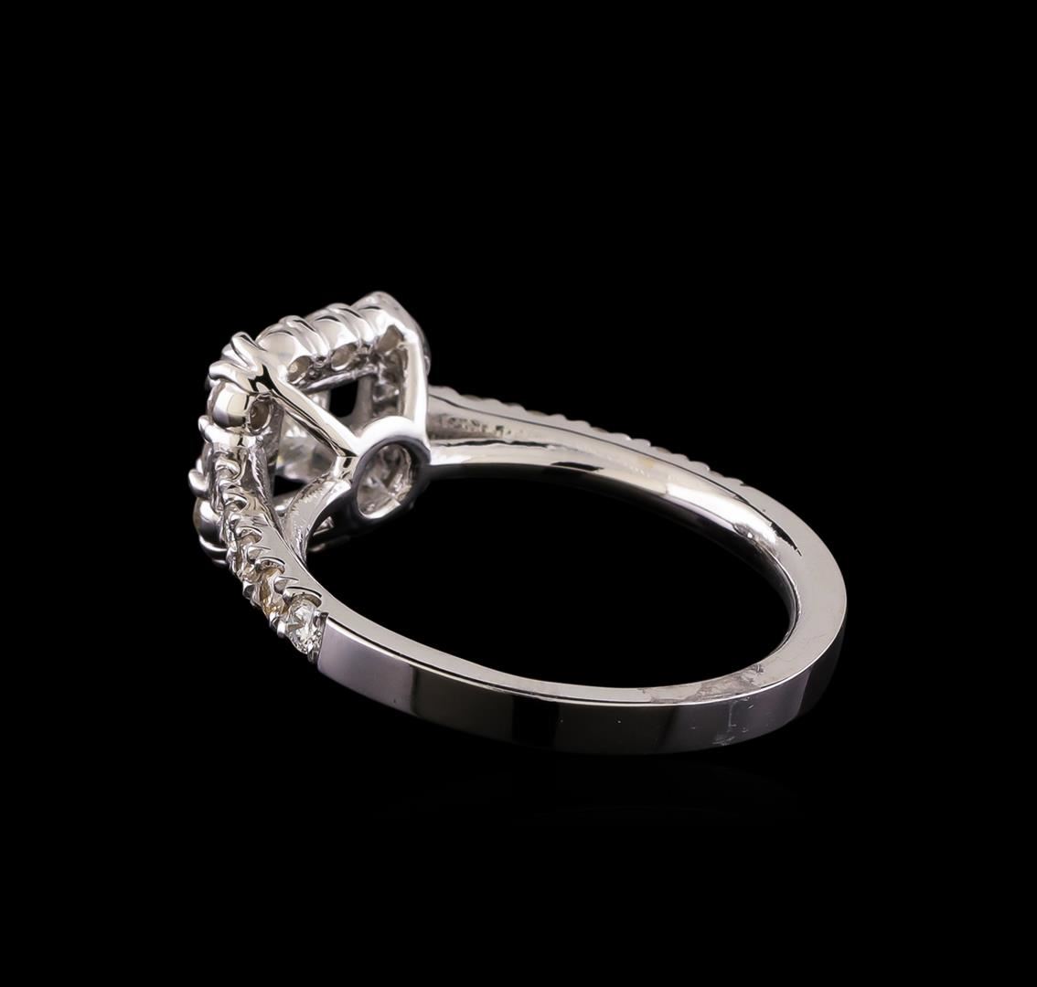 One electronically tested 14KT white gold lady's cast wedding ring with a cathedral halo with a bright polish finish. The featured lady's ring has a shank measuring 2.07 millimeters wide. Identified with markings of "14K". Condition is new, good workmanship. Containing: One prong set princess cut diamond, measuring 4.98 x 4.96 x 3.72mm (depth est.) approximate weight of 0.75ct. Graded in the setting. Clarity: I-2. Color: G - Good Twelve prong set round brilliant cut diamonds, measuring 2.10 - 2.00 x 1.27mm (depth est.) approximate total weight of 12 Stones = 0.40ct. Graded in the setting. Clarity: VS-2 to SI-1. Color: I - Good Ten prong set round brilliant cut diamonds, measuring 2.00 - 1.90 x 1.21mm (depth est.) approximate total weight of 10 Stones = 0.28ct. Graded in the setting. Clarity: SI-1 to SI-2. Color: I - Good. Total Weight of Diamonds 1.43ct. Total Weight of Ring 4.00gm. GAS Appraised at $4,885.00.