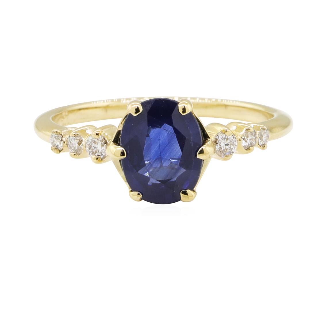 One ring featuring: 14KT yellow gold weighing 2.5 grams containing one oval sapphire weighing 1.18ct and diamonds weighing 0.25ctw.