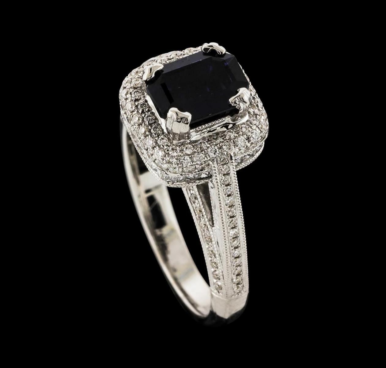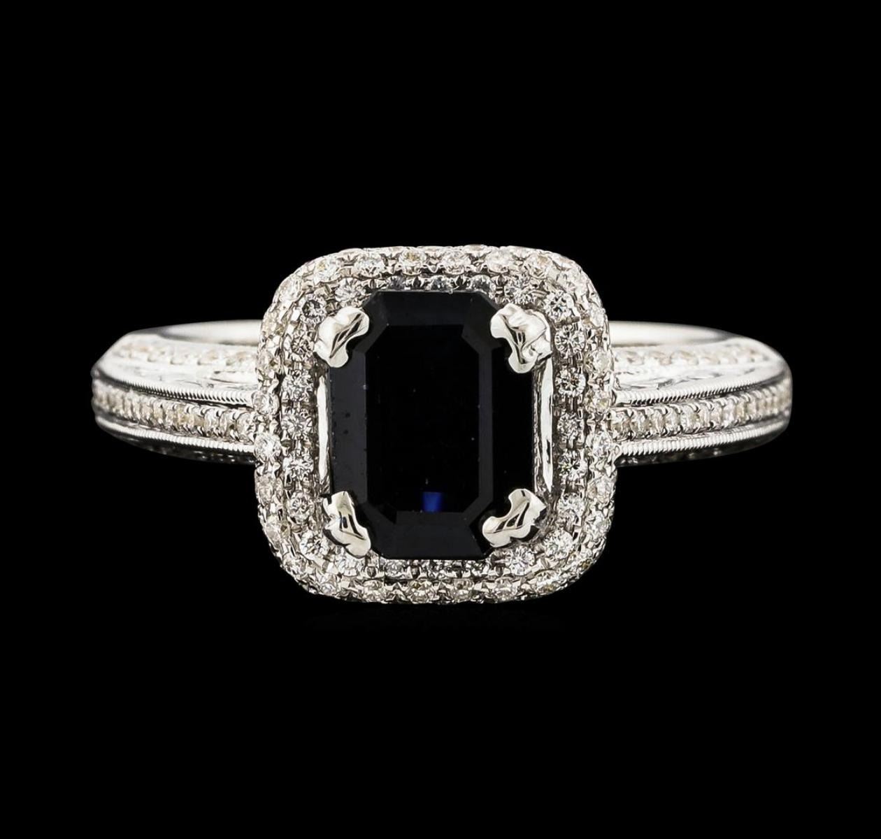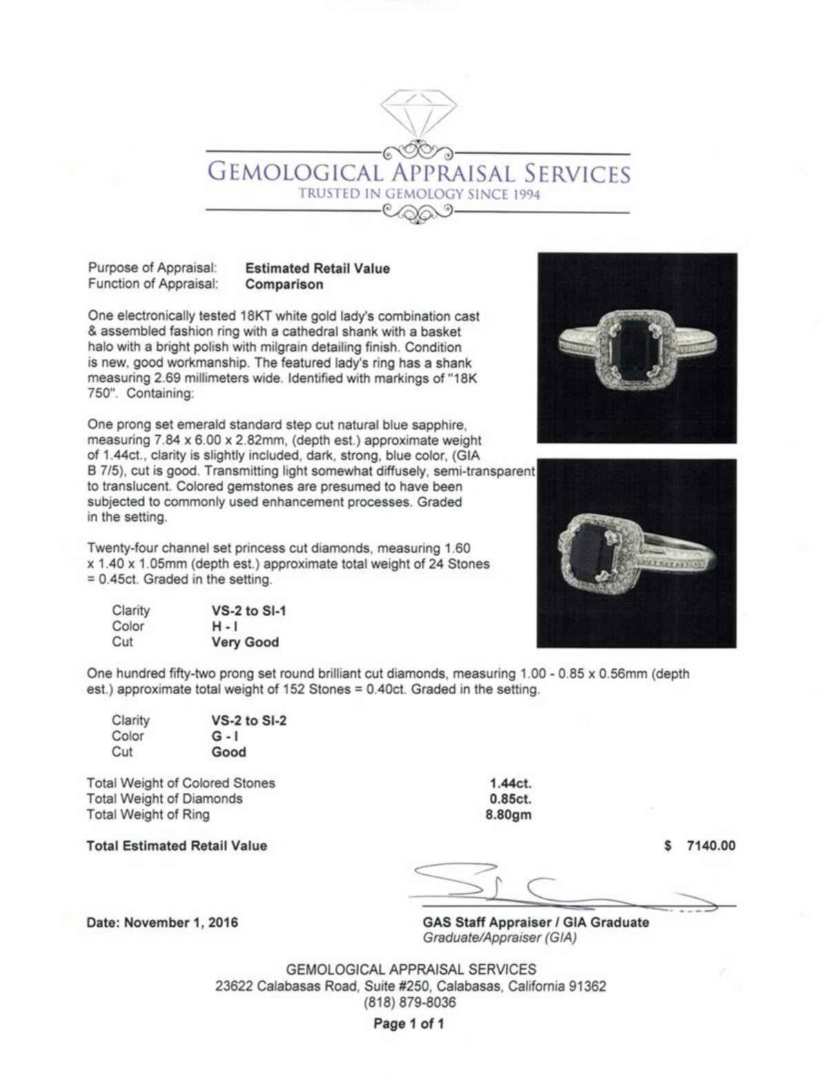 One electronically tested 18KT white gold lady's combination cast & assembled fashion ring with a cathedral shank with a basket halo with a bright polish with milgrain detailing finish. The featured lady's ring has a shank measuring 2.69 millimeters wide.