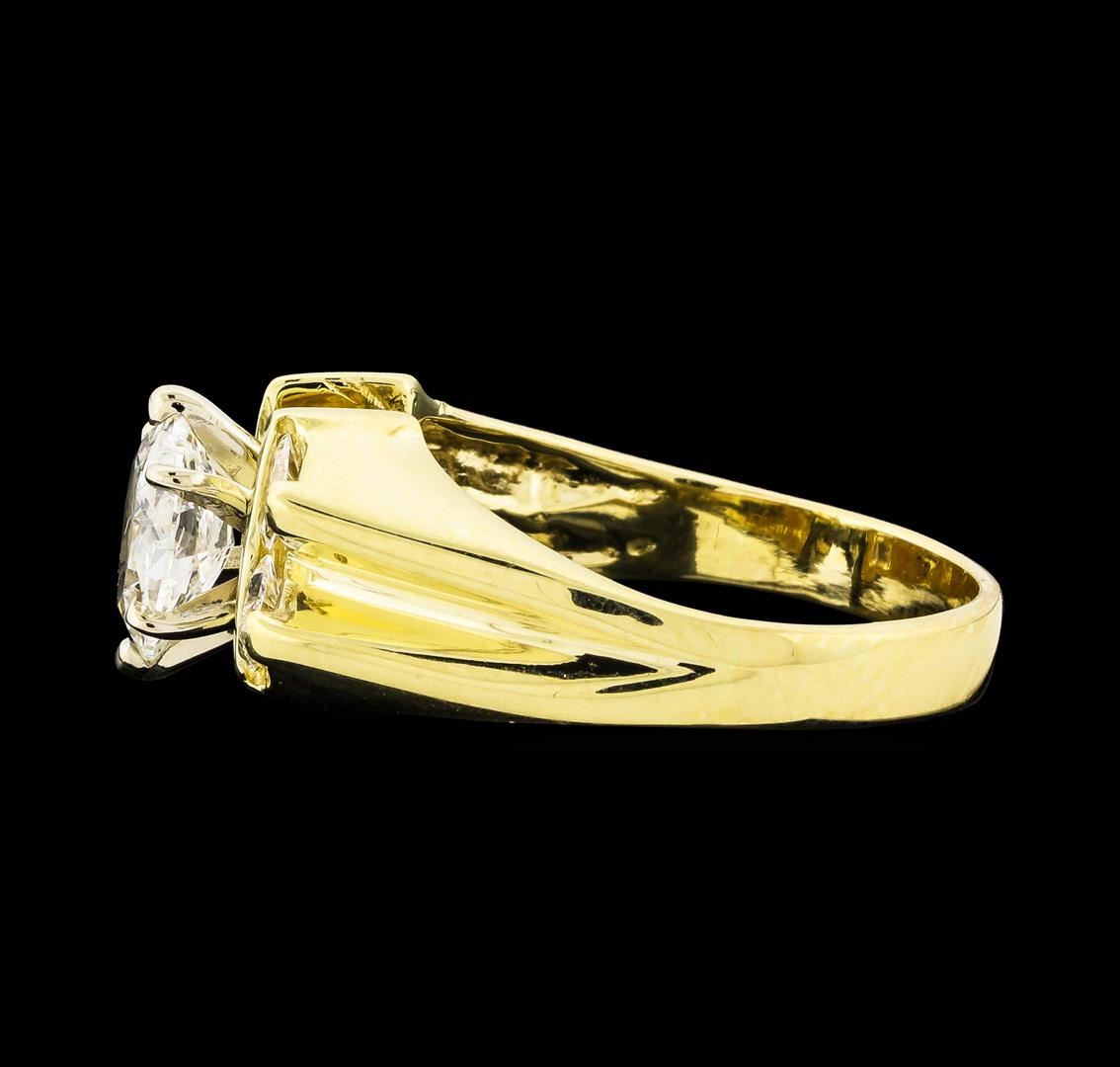 One electronically tested 14KT yellow gold lady's combination cast & assembled wedding ring with a bright polish finish. The featured lady's ring has a shank measuring 3.21 millimeters wide. Identified with markings of '14K'. Condition is like new, good workmanship. Containing: One prong set oval shaped cut diamond, measuring 7.70 x 5.60 x 3.53mm (depth est.) approximate weight of 1.00ct. Graded in the setting. Clarity I-1. Color: F Cut Very Good Four prong set triangle brilliant cut diamonds, measuring 4.00 x 3.75 x 1.30mm (depth est.) approximate total weight of 4 Stones = 0.45ct. Graded in the setting. Clarity VS-2 to SI-1. Color: H - I Cut Very Good. Total Weight of Diamonds 1.45ct.. Total Weight of Ring 5.90gm. GAS Appraised at $9,225.00.