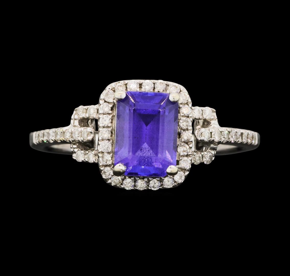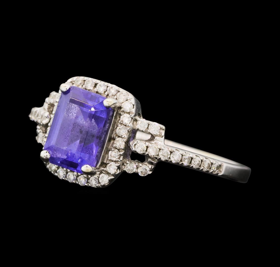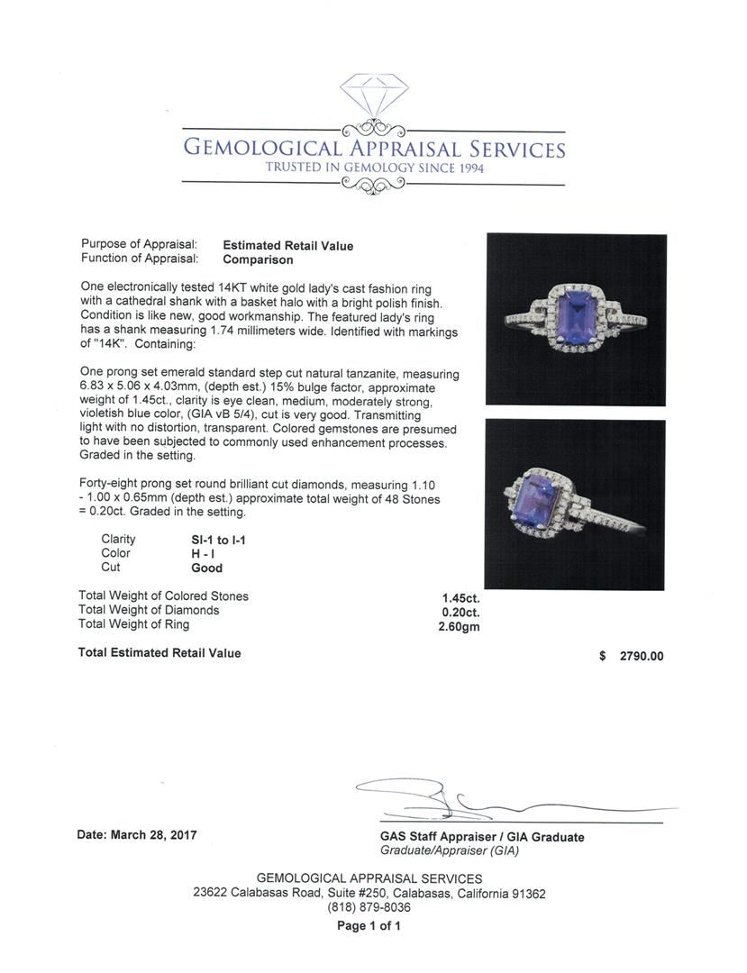 One electronically tested 14KT white gold lady's cast fashion ring with a cathedral shank with a basket halo with a bright polish finish. The featured lady's ring has a shank measuring 1.74 millimeters wide. Identified with markings of '14K'. Condition is GAS Appraised at $2,790.00.