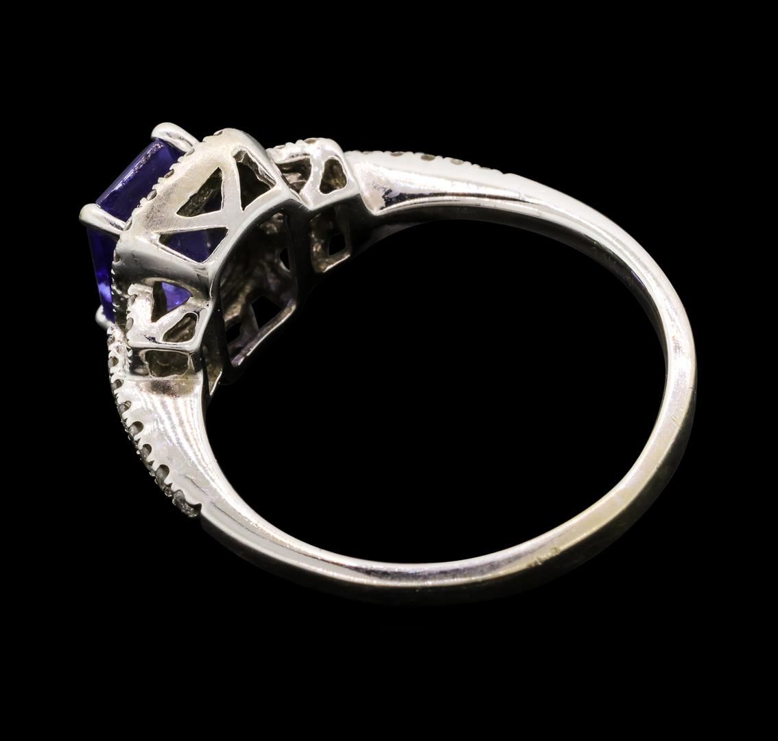 One electronically tested 14KT white gold lady's cast fashion ring with a cathedral shank with a basket halo with a bright polish finish. The featured lady's ring has a shank measuring 1.74 millimeters wide. Identified with markings of '14K'. Condition is GAS Appraised at $2,790.00.