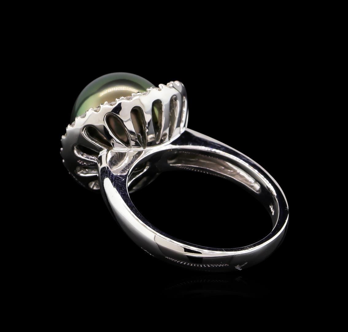 One ring featuring: 14KT white gold weighing 7.26 grams containing one pearl and side diamonds with a total weight of 0.46ct.