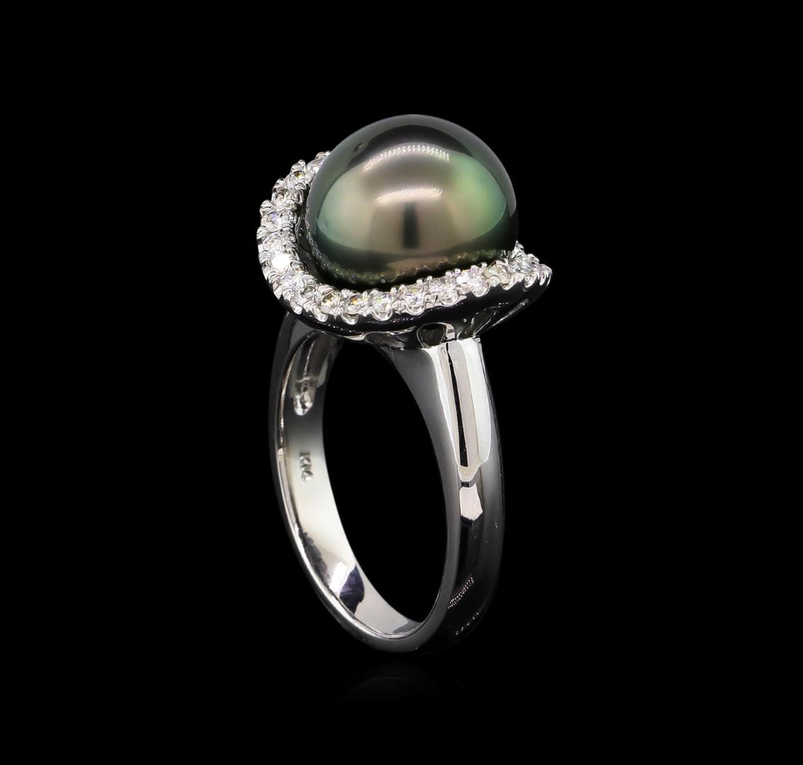 One ring featuring: 14KT white gold weighing 7.26 grams containing one pearl and side diamonds with a total weight of 0.46ct.