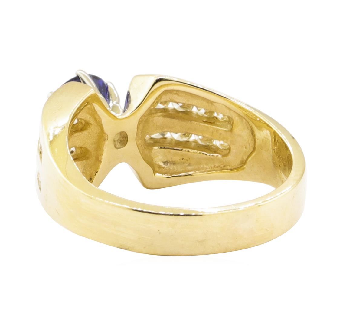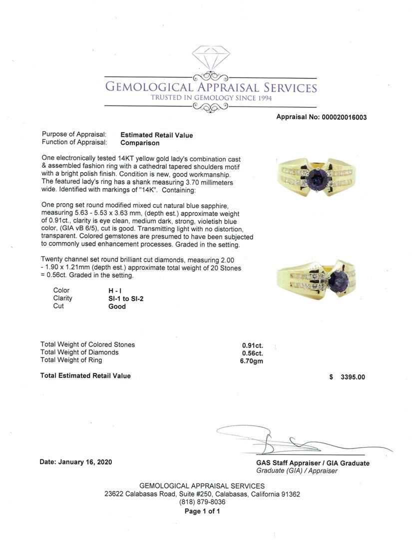 One electronically tested 14KT yellow gold lady's combination cast & assembled fashion ring with a cathedral tapered shoulders motif with a bright polish finish. The featured lady's ring has a shank measuring 3.70 millimeters wide. Identified with marking