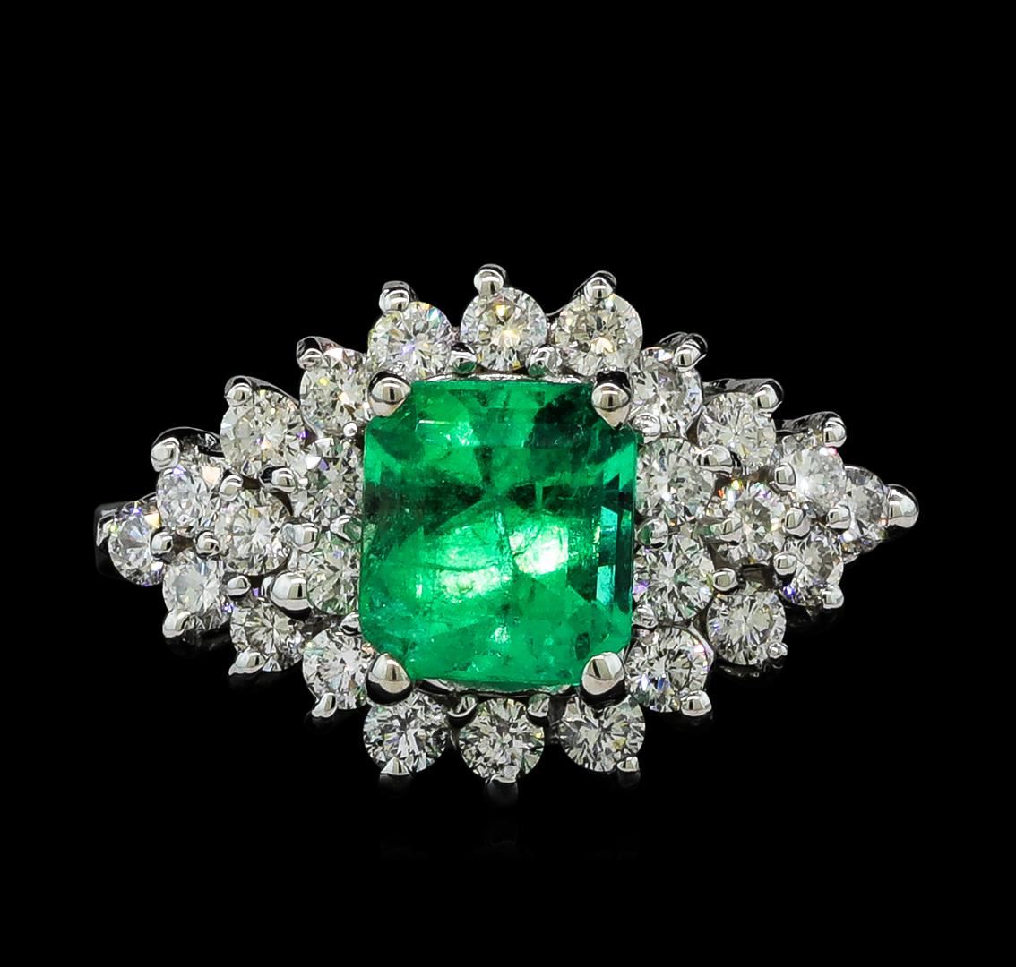 One Emerald and Diamond Ring including: 14KT White Gold with a total weight of 4.25 grams; Emerald with a total weight of 1.48 ct and Diamonds with a total weight of 0.88 ctw.