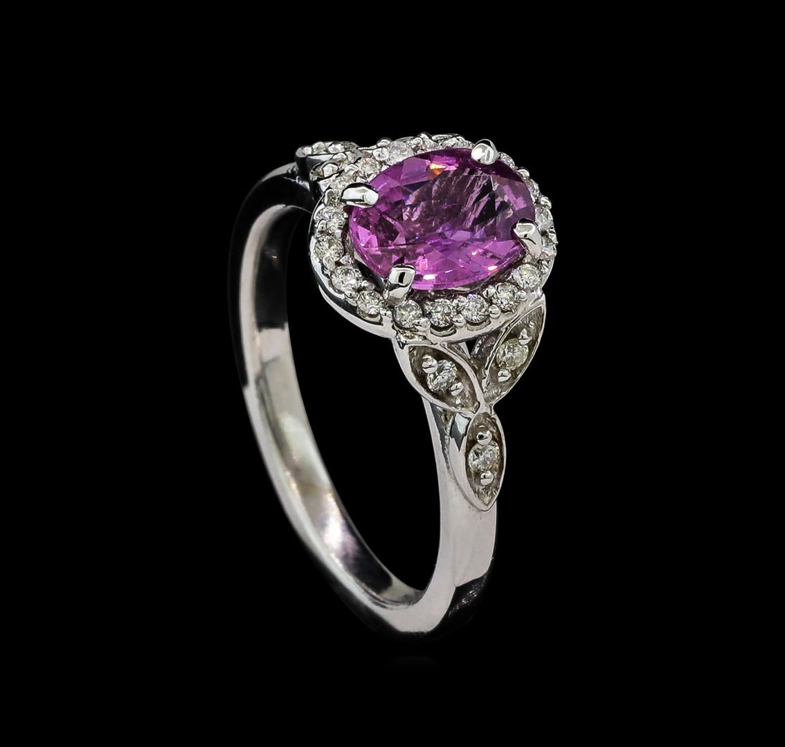 One ring including: 14KT White Gold containing Pink Sapphire with a total weight of 1.49 ct. and Diamonds with a total weight o f 0.24 ctw.