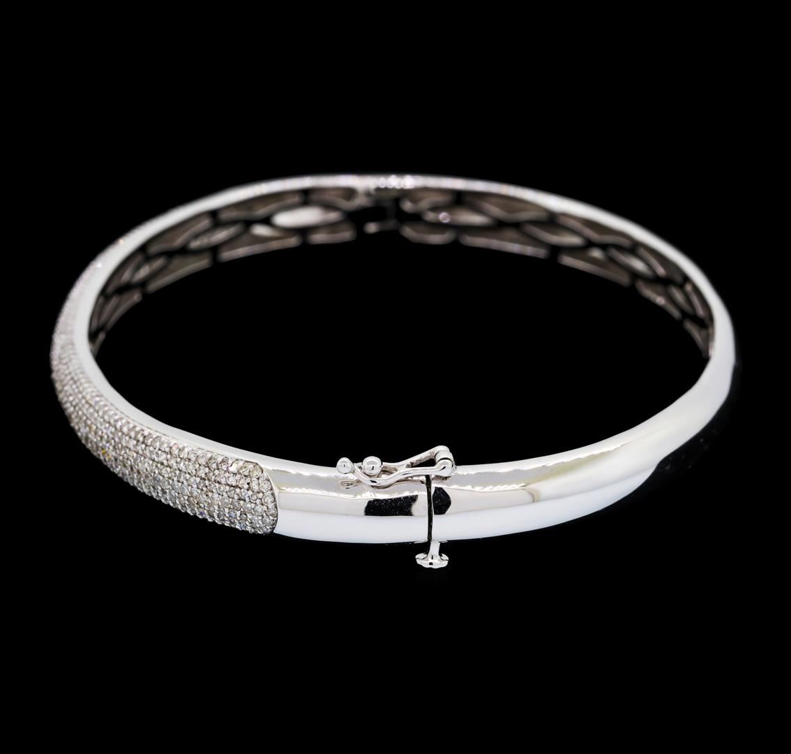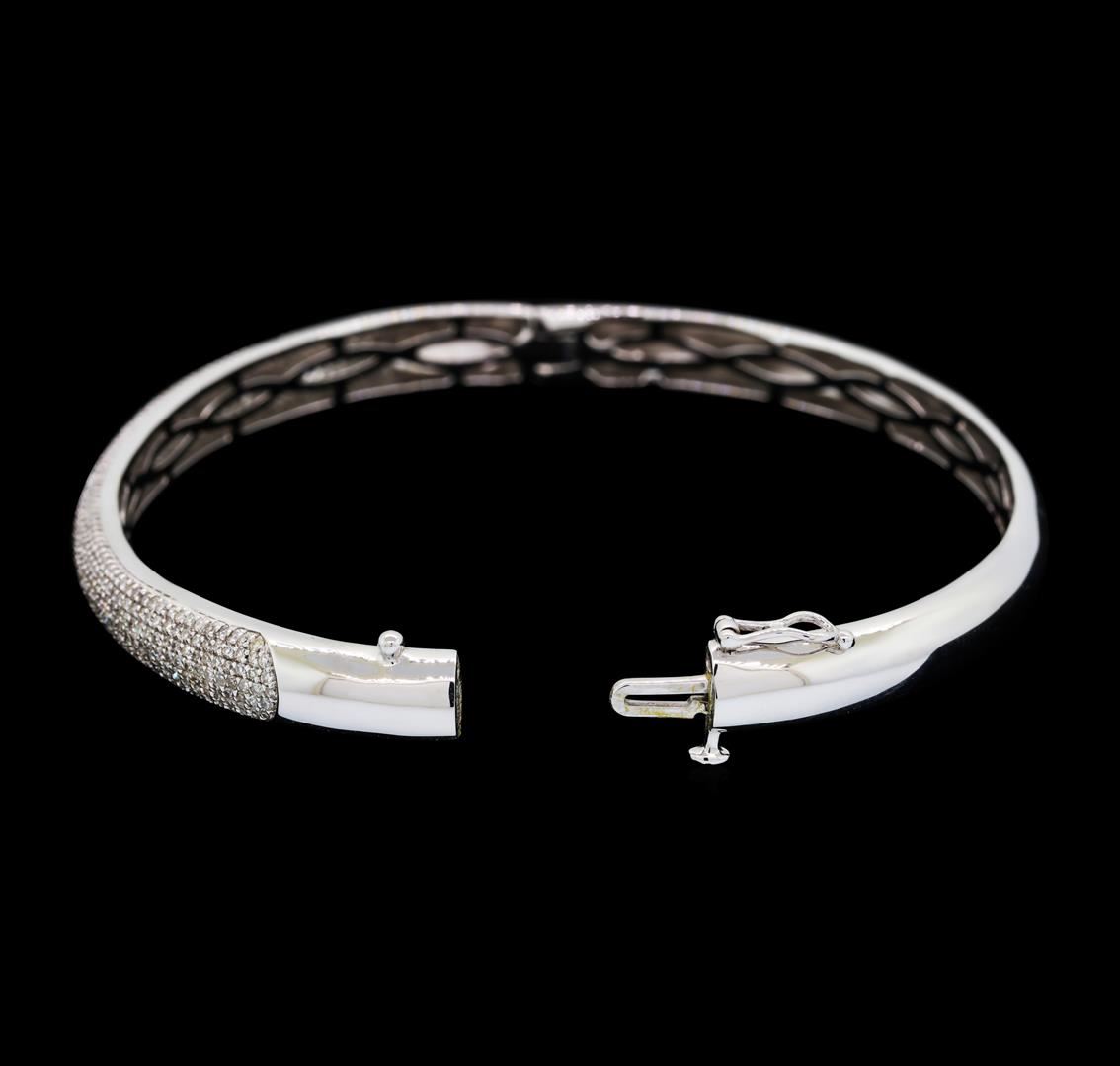 One bangle bracelet featuring: 14KT white gold weighing 11 grams containing diamonds weighing 1.50ctw.