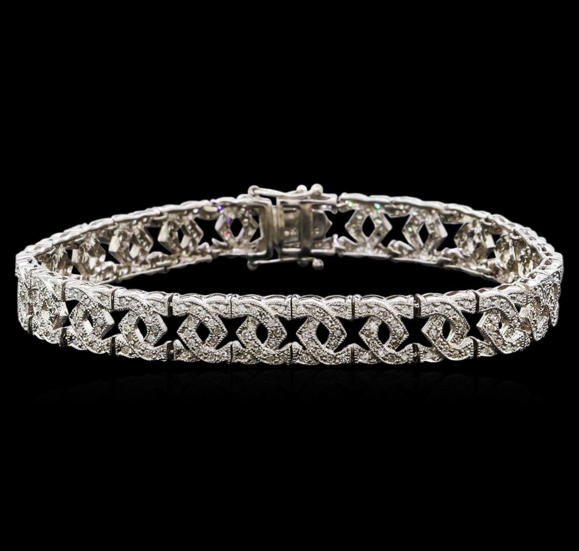 One 14KT white gold bracelet weighing 14.4 grams containing diamonds with VS2-SI2 clarity and H-J color weighing 1.50ctw. GGA Appraised at $3,940.00.
