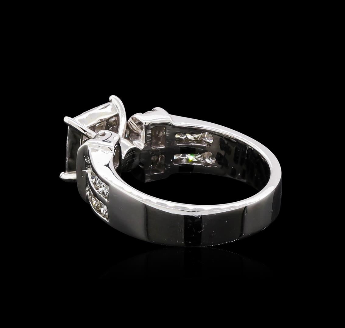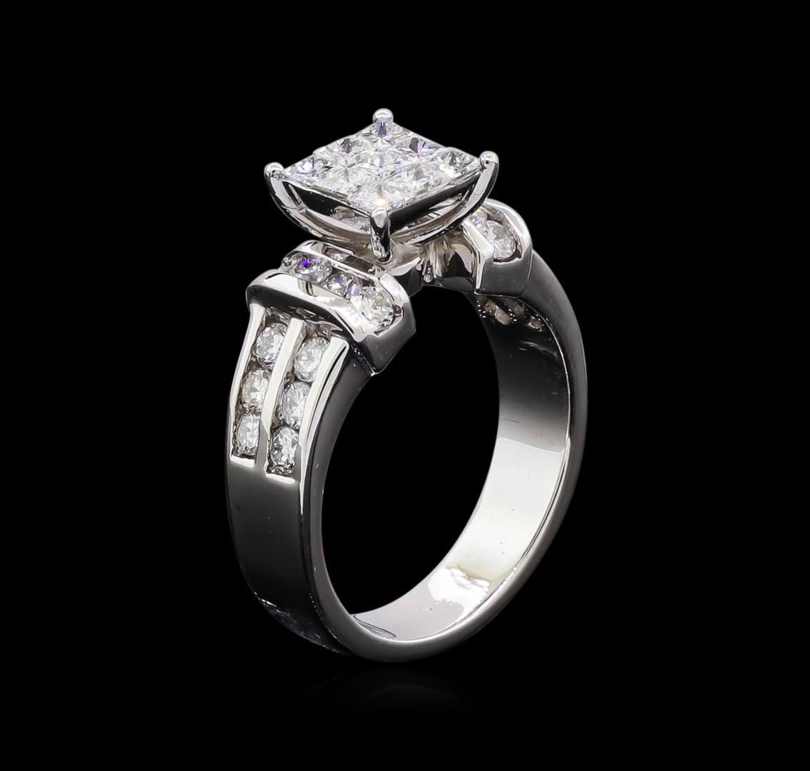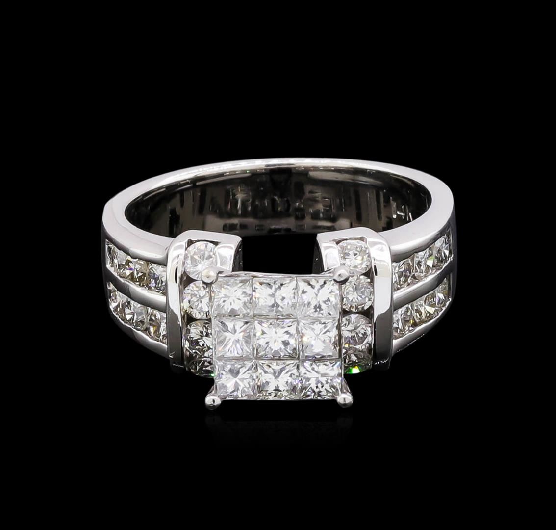 One electronically tested 14KT white gold ladies cast diamond ring with a bright polish finish. The ring features a center gallery of princess cut diamonds supported by stylized diamond set shoulders, completed by a four millimeter wide band. Identified with markings of "14K". Condition is new, good workmanship. Containing: Nine invisible set princess cut diamonds, measuring 2.30 x 2.20 x 1.54mm (depth est.) approximate total weight of 9 Stones = 0.60ct. Graded in the setting. Clarity: VS-2 to SI-2. Color: E - F Twenty channel set round brilliant cut diamonds, measuring 2.30 - 2.20 x 1.35mm (depth est.) approximate total weight of 20 Stones = 0.90ct. Graded in the setting. Clarity: SI-2 to I-2. Color: F - H. Total Weight of Diamonds 1.50ct. Total Weight of Ring 6.75gm. AIG Appraised at $5,290.00.