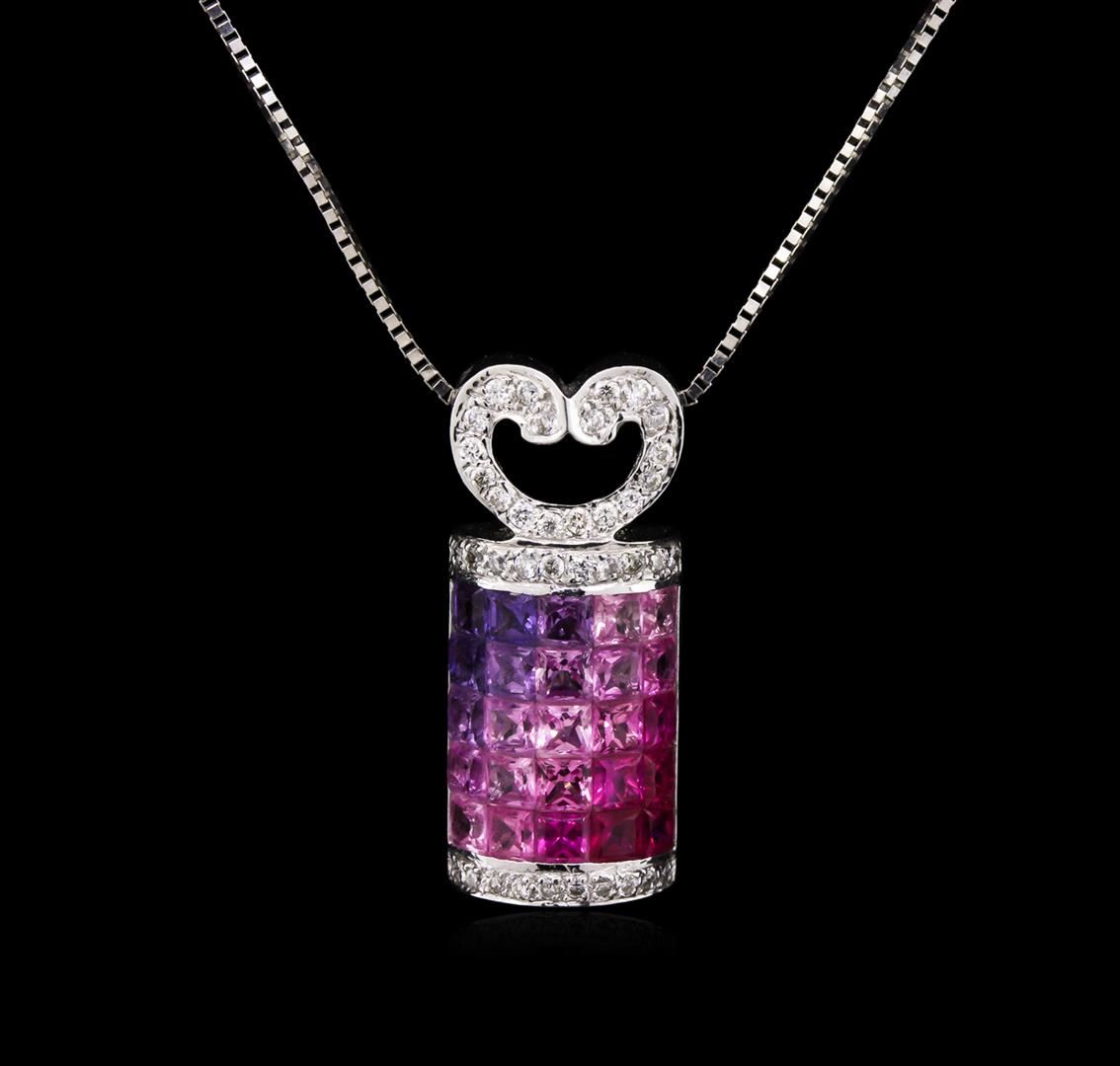 One pendant with chain featuring: 18KT white gold weighing 3.90 grams containing multi-colored sapphires with a total weight of 1.50ct and diamonds with a total weight of 0.20ct.