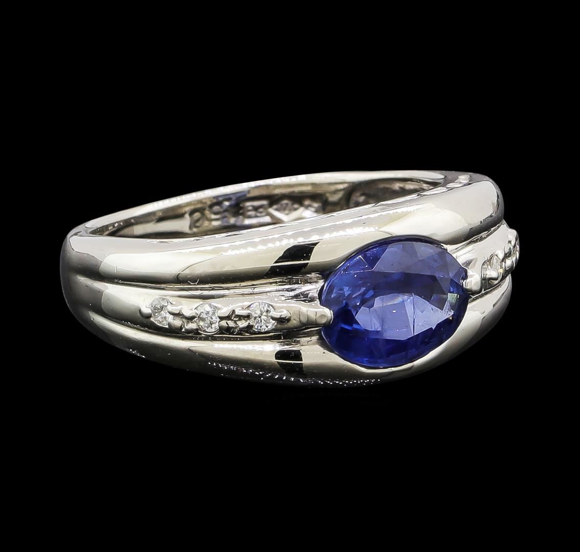 One ring featuring: Platinum containing Sapphire with a total weight of 1.50ct and Diamonds with a total weight of 0.08ct. Total Weight of Ring: 7.4 grams.