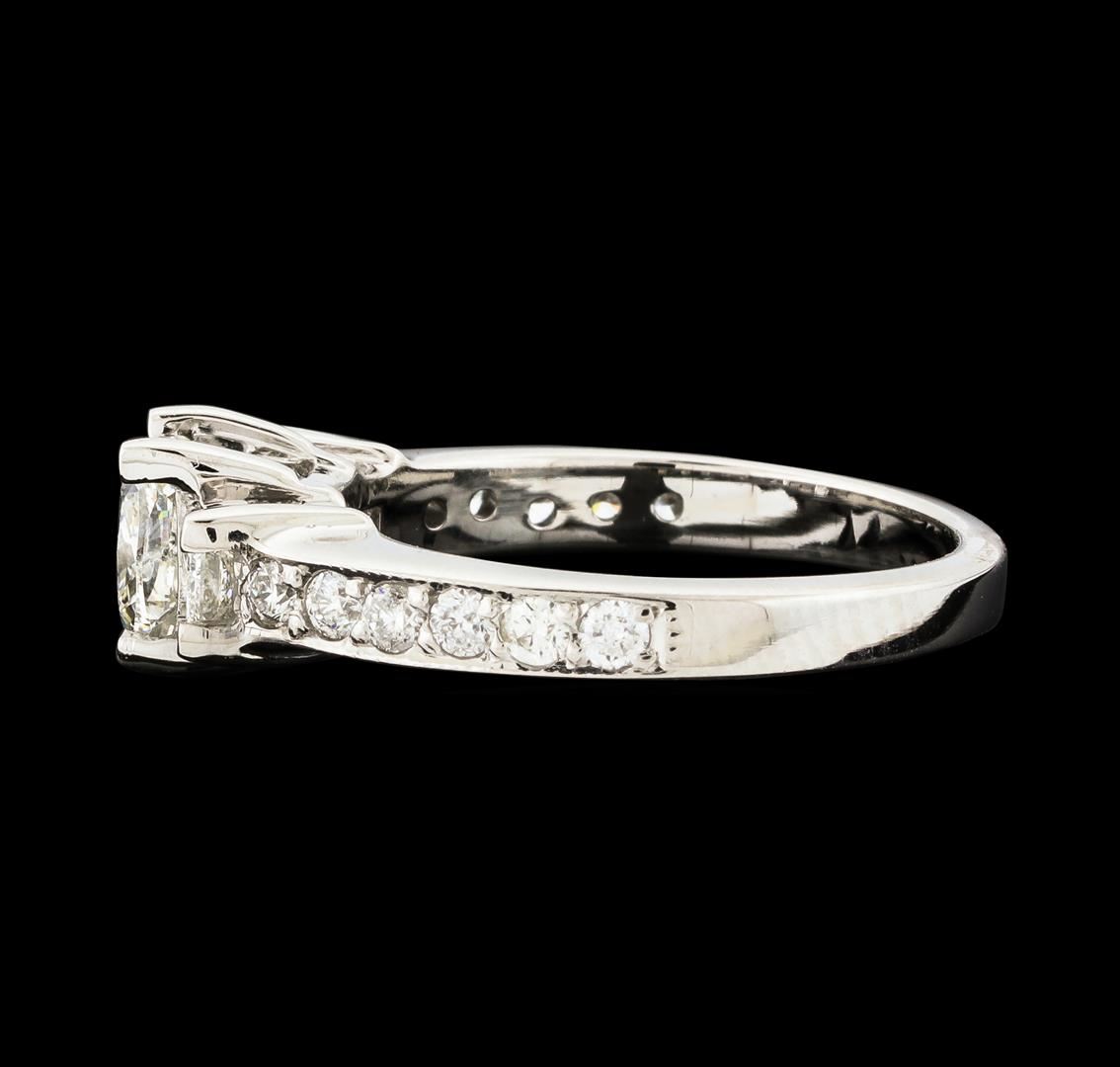 One electronically tested 14KT white gold lady's cast three stone wedding ring with a cathedral shank with a bright polish with milgrain detailing finish. The featured lady's ring has a shank measuring 2.32 millimeters wide. Identified with markings of '14K'. Condition is new, good workmanship. Containing: One prong set cushion cut diamond, measuring 5.79 x 5.23 x 3.81mm (depth est.) approximate weight of 0.96ct. Graded in the setting. Clarity I-1. Color: H Cut Very Good Two prong set princess cut diamonds, measuring 3.20 x 2.80 x 2.10mm (depth est.) approximate total weight of 2 Stones = 0.30ct. Graded in the setting. Clarity VS-2 to SI-2. Color: H Cut Good Twelve prong set round brilliant cut diamonds, measuring 1.90 - 1.80 x 1.15mm (depth est.) approximate total weight of 12 Stones = 0.25ct. Graded in the setting. Clarity SI-2 to I-1. Color: H - I Cut Good. Total Weight of Diamonds 1.51ct.. Total Weight of Ring 4.20gm. GAS Appraised at $7,810.00.