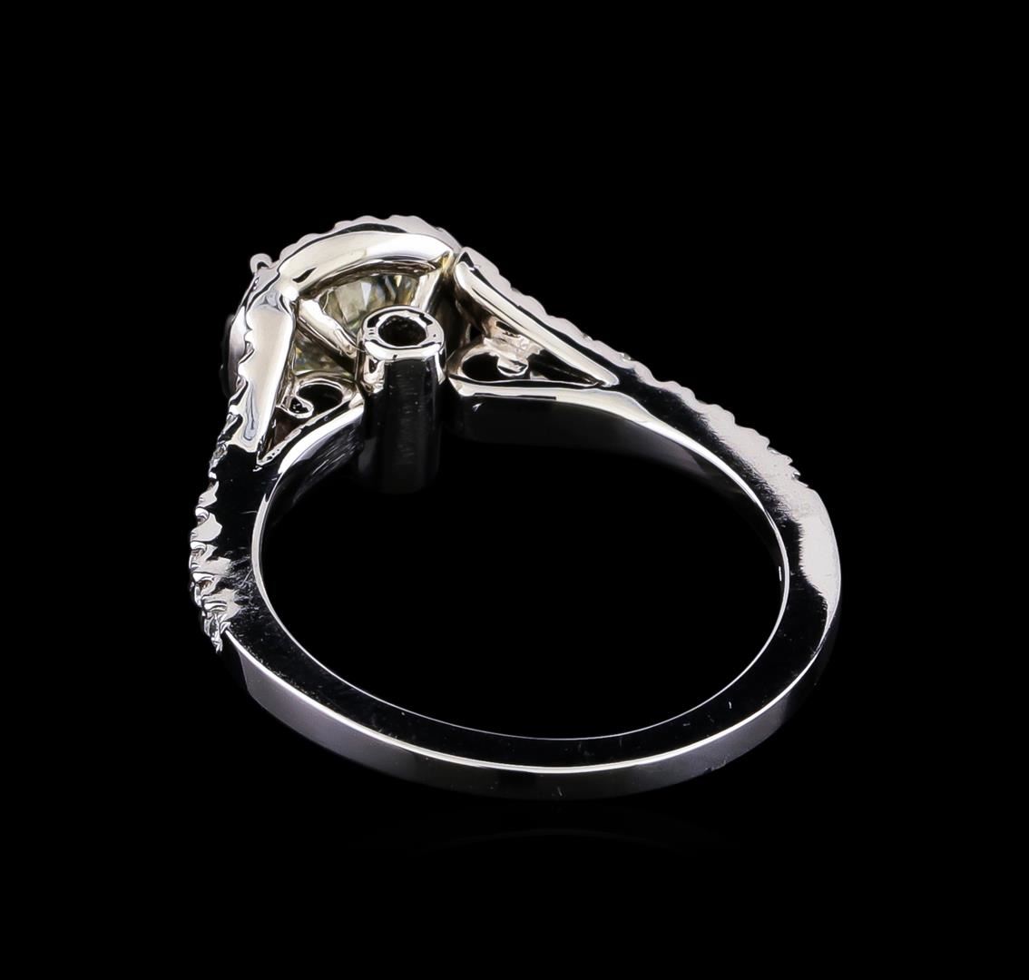 One electronically tested 14KT white gold lady's cast wedding ring with a split shank basket halo with a bright polish finish. The featured lady's ring has a shank measuring 1.53 millimeters in width. Identified with markings of "14K". Condition is new, good workmanship. Containing: One prong set round brilliant cut diamond, measuring 6.62 - 6.60 x 4.20mm (depth est.) approximate weight of 1.13ct. Graded in the setting. Clarity: I-1. Color: I - Good Forty prong set round brilliant cut diamonds, measuring 1.40 - 1.30 x 0.81mm (depth est.) approximate total weight of 40 Stones = 0.38ct. Graded in the setting. Clarity: SI-1 to SI-2. Color: H - I. Cut Good. Total Weight of Diamonds 1.51ct. Total Weight of Ring 4.30gm GAS Appraised at $11,780.00.