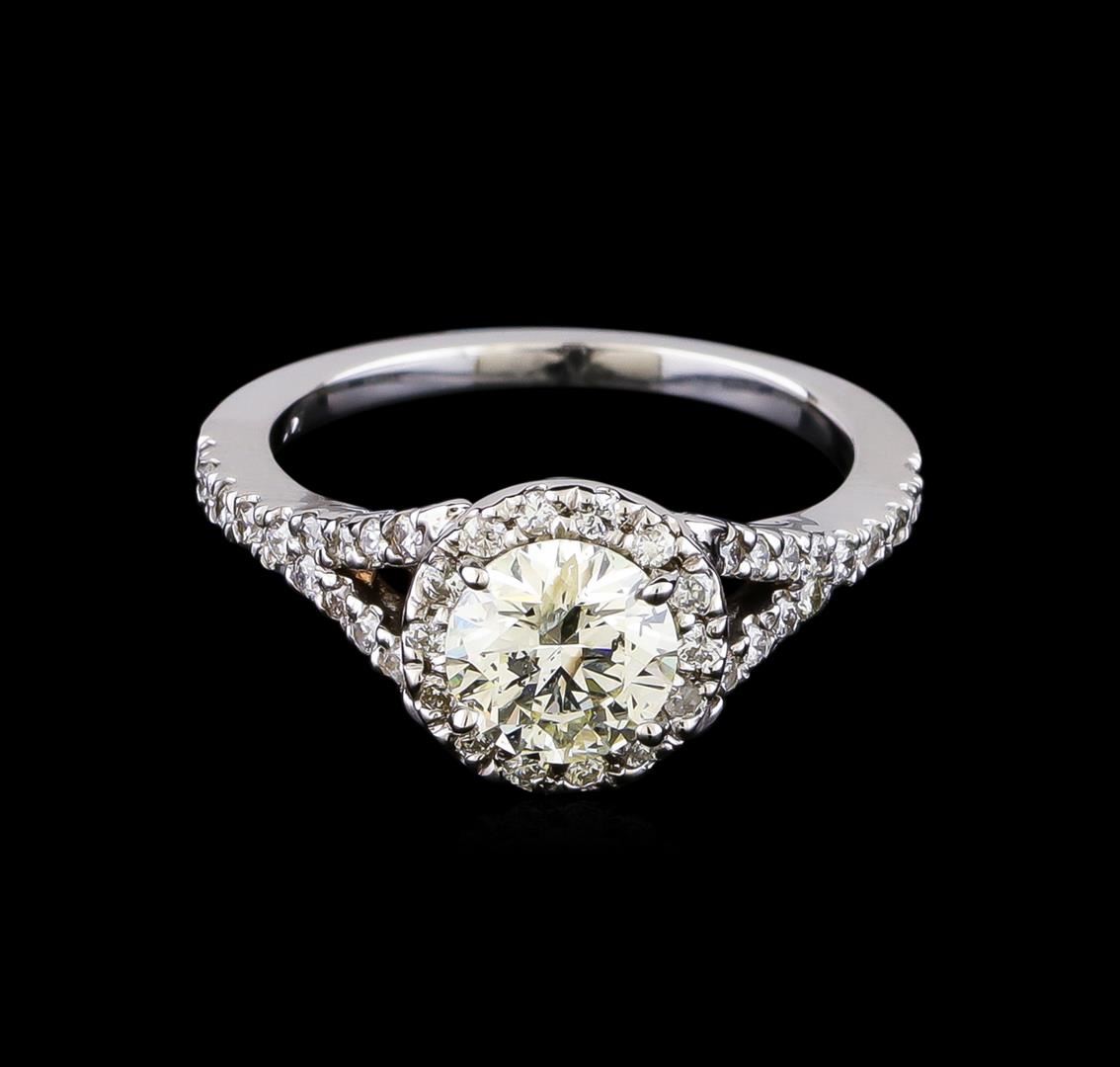 One electronically tested 14KT white gold lady's cast wedding ring with a split shank basket halo with a bright polish finish. The featured lady's ring has a shank measuring 1.53 millimeters in width. Identified with markings of "14K". Condition is new, good workmanship. Containing: One prong set round brilliant cut diamond, measuring 6.62 - 6.60 x 4.20mm (depth est.) approximate weight of 1.13ct. Graded in the setting. Clarity: I-1. Color: I - Good Forty prong set round brilliant cut diamonds, measuring 1.40 - 1.30 x 0.81mm (depth est.) approximate total weight of 40 Stones = 0.38ct. Graded in the setting. Clarity: SI-1 to SI-2. Color: H - I. Cut Good. Total Weight of Diamonds 1.51ct. Total Weight of Ring 4.30gm GAS Appraised at $11,780.00.