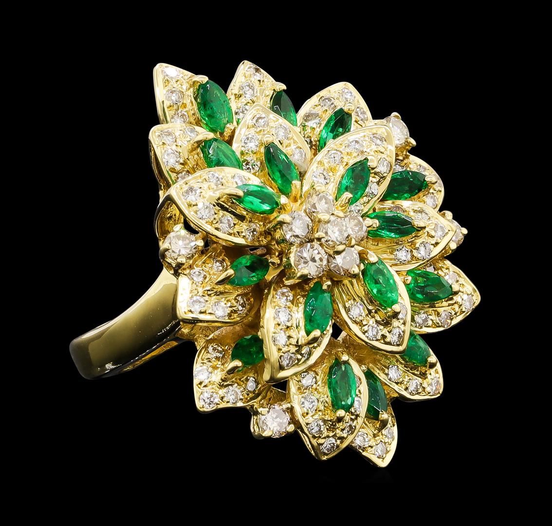 One ring featuring: 18KT Yellow Gold containing Diamonds with a total weight of 1.51ct and Emerald. Total Weight of Ring: 13.8 grams.