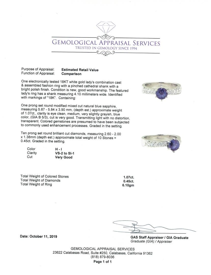 One electronically tested 18KT white gold lady's combination cast & assembled fashion ring with a pinched cathedral shank with a bright polish finish. The featured lady's ring has a shank measuring 4.10 millimeters wide. Identified with markings of '18K'.