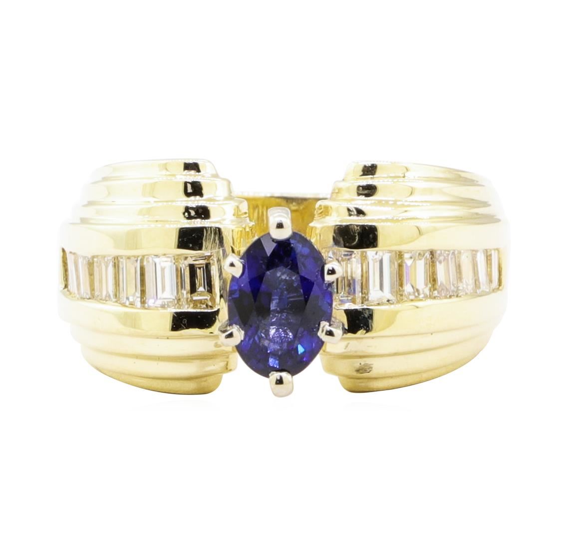 One ring featuring: 14KT yellow gold weighing 8.4 grams containing one sapphire weighing 0.92ct and diamonds weighing 0.60 ctw.