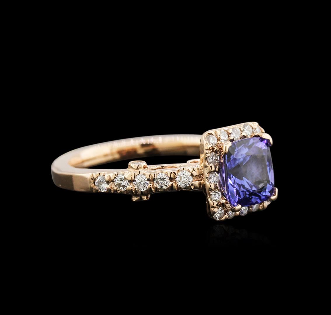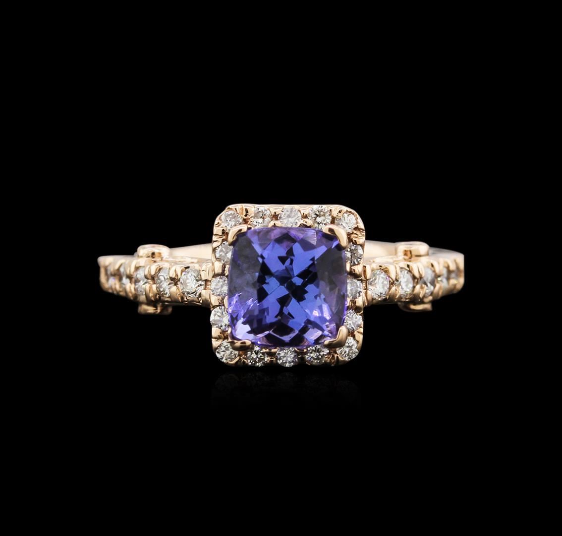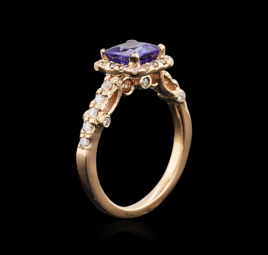 One ring featuring: 14KT rose gold weighing 4.05 grams containing one tanzanite center stone with a total weight of 1.52ct and 32 diamonds with a total weight of 0.33ct.