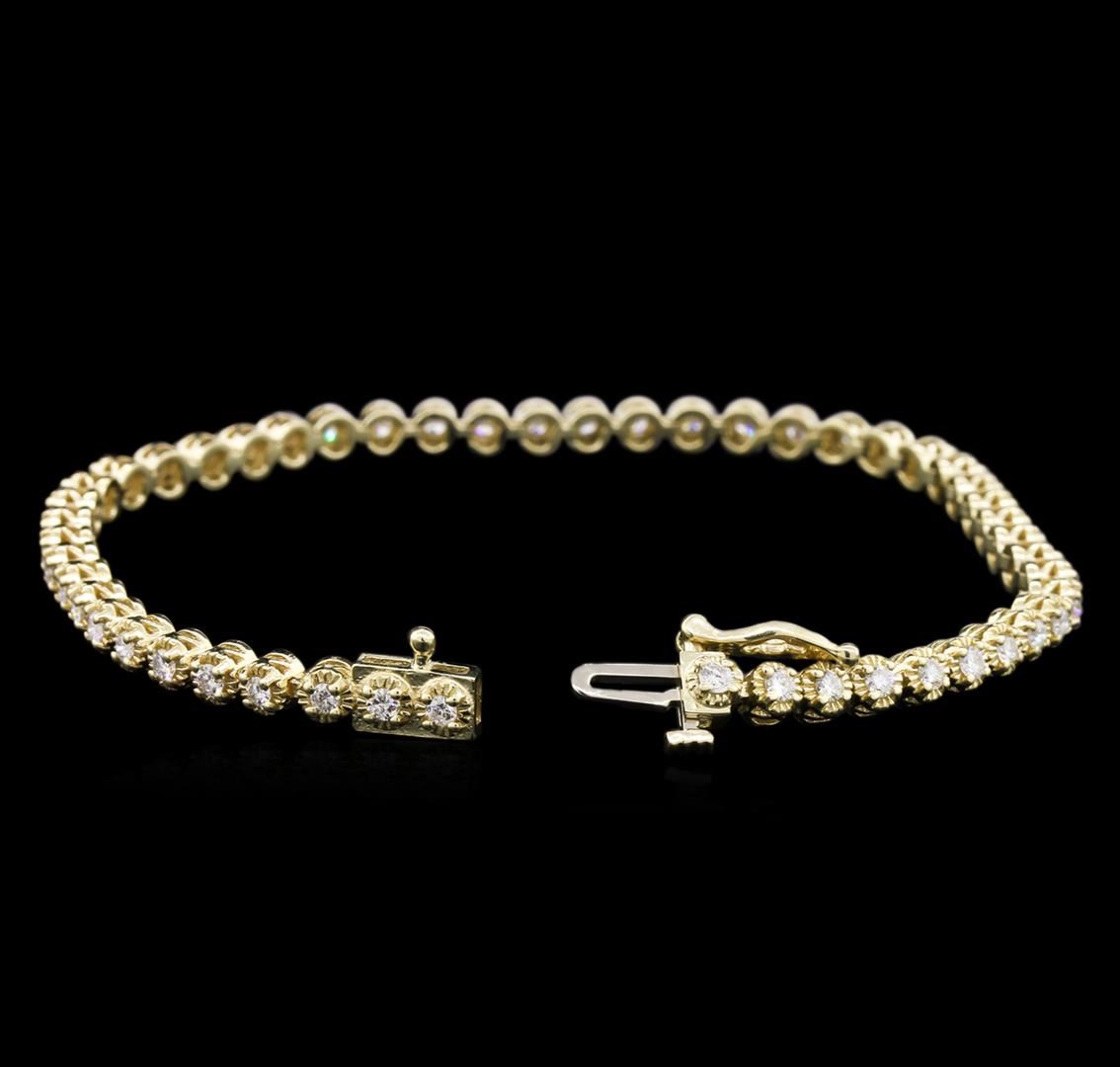 One electronically tested 14KT yellow gold lady's combination cast & assembled tennis bracelet with a tongue clasp with foldover safety with a bright polish finish. The featured lady's bracelet measures approximately 7 inches in length. Identified with markings of "14K". Condition is new, good workmanship. Containing: Fifty prong set round brilliant cut diamonds, measuring 2.00 - 1.90 x 1.27mm (depth est.) approximate total weight of 50 Stones = 1.52ct. Graded in the setting. Clarity: VS-2 to SI. Color: H - I. Cut Good. Total Weight of Diamonds 1.52ct. Total Weight of Bracelet 10.40gm. GAS Appraised.