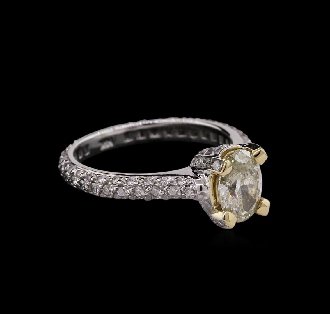 One electronically tested 14KT white gold lady's cast wedding ring with a cathedral shank with a bright polish finish. The featured lady's ring has a shank measuring 2.62 millimeters wide. Identified with markings of "14K". Condition is new, good workmanship. Containing: One prong set oval shaped cut diamond, measuring 7.91 x 5.67 x 3.57mm (depth est.) approximate weight of 1.01ct. Graded in the setting. Clarity: I-1. Color: K - Very Good One Hundred Twelve prong set round brilliant cut diamonds, measuring 1.10 - 1.00 x 0.67mm (depth est.) approximate total weight of 112 Stones = 0.52ct. Graded in the setting. Clarity: SI-1 to I-1. Color: H - I. Cut Good. Total Weight of Diamonds 1.53ct. Total Weight of Ring 4.40gm. GAS Appraised at $8,375.00.