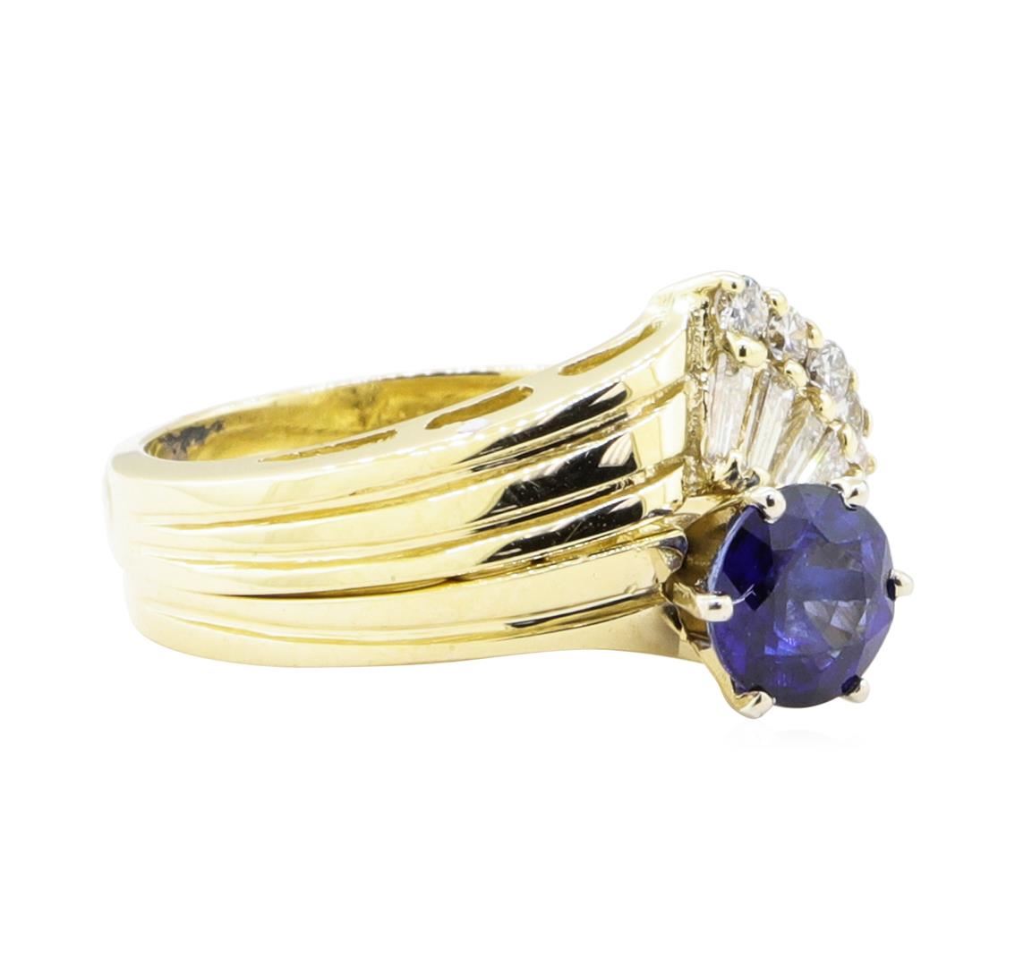 One ring featuring: 14KT yellow gold weighing 5.7 grams containing one sapphire weighing 1.04ct and diamonds weighing 0.50 ctw.