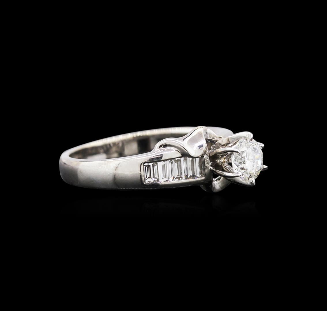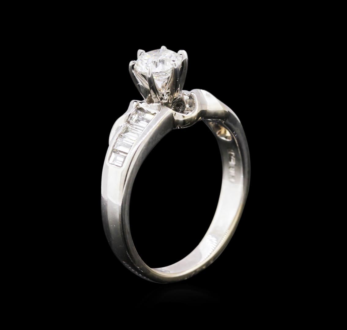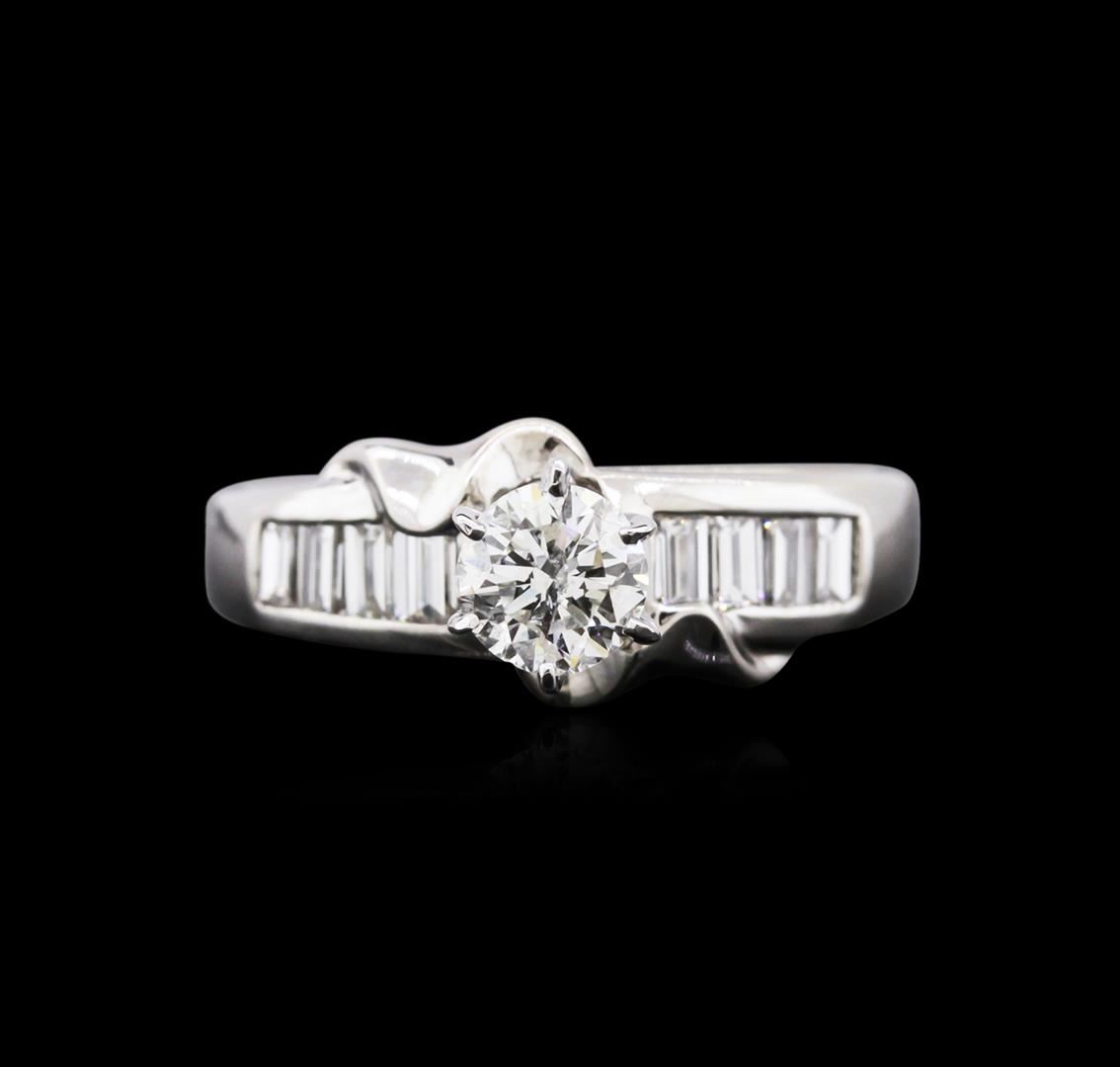 One ring featuring: 18KT white gold weighing 3.20 grams containing one diamond center stone with a total weight of 0.54ct and eight baguette cut diamonds with a total weight of 1.00ct.