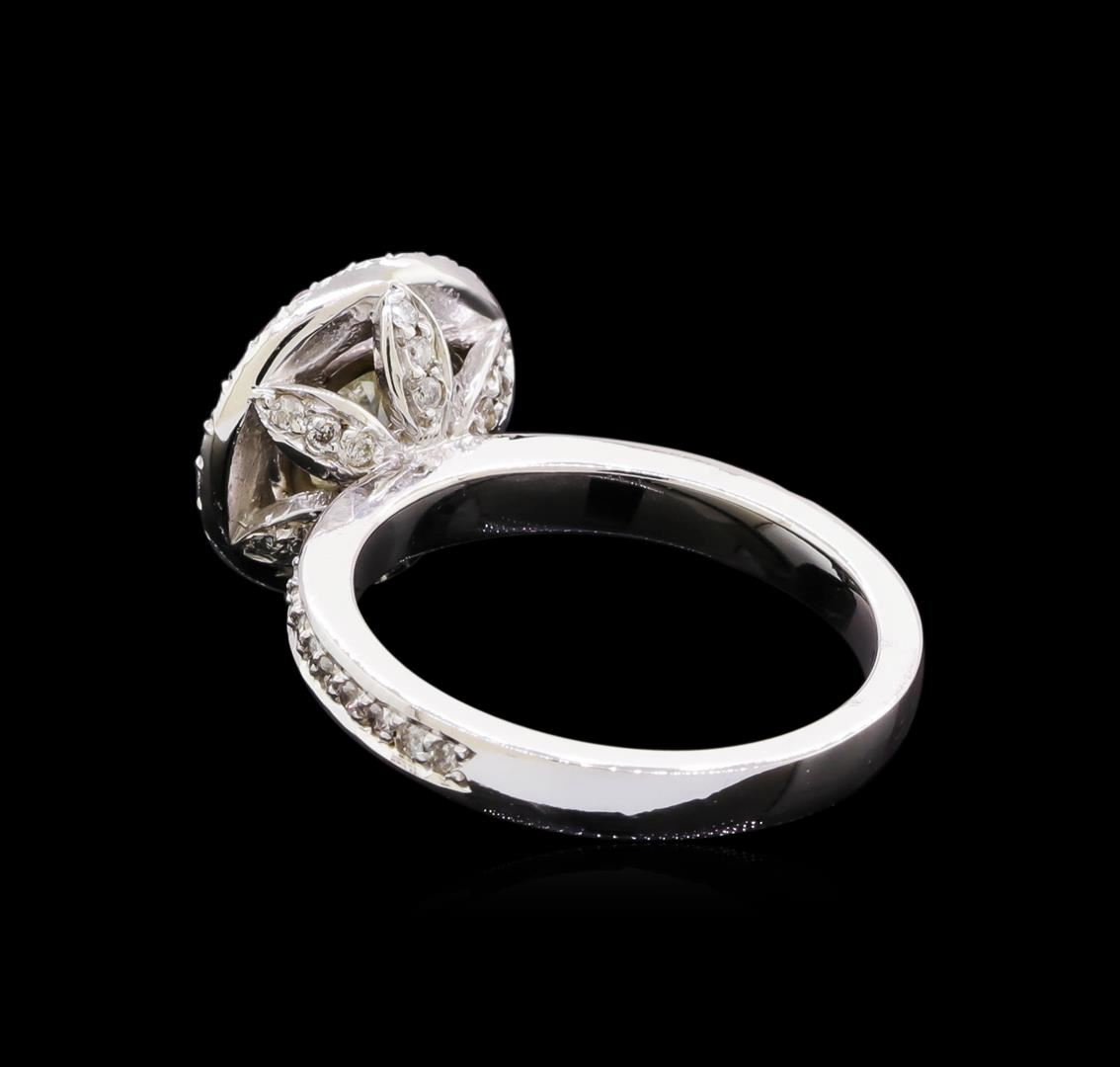 One electronically tested 14KT white gold lady's cast wedding ring with a basket halo with a bright polish finish. Featured lady's ring has a shank measuring 2.55 millimeters in width. Identified with markings of "14K". Condition is new, good workmanship. Containing: One prong set round brilliant cut diamond, measuring 6.26 - 6.24 x 4.00mm (depth est.) , 5.00.%. GTCF approximate weight of 1.00 ct. Graded in the setting. Clarity: I-1. Color: J - K. Cut Good Forty-Two prong set round brilliant cut diamonds, measuring 1.25 - 1.10 x 0.73mm (depth est.) approximate total weight of 42 Stones = 0.27ct. Graded in the setting. Clarity: SI-1 to SI-2. Color: G - I. Cut Good Fifty-Two prong set round brilliant cut diamonds, measuring 1.20 - 1.00 x 0.68mm (depth est.) approximate total weight of 52 Stones = 0.28ct. Graded in the setting. Clarity: SI-1 to I-1. Color: H - I. Cut Good. Total Weight of Diamonds 1.55ct. Total Weight of Ring 5.60gm. GAS Appraised.