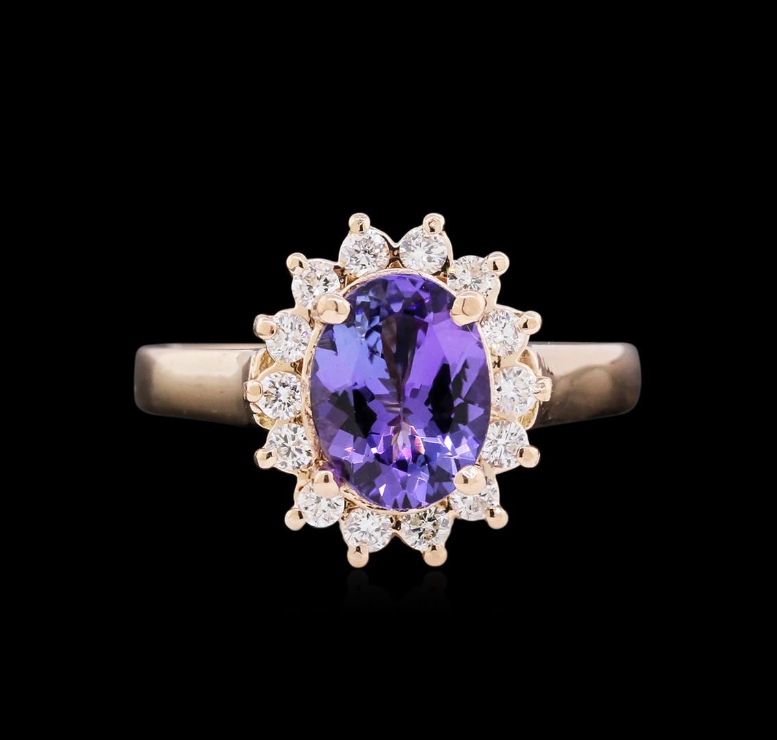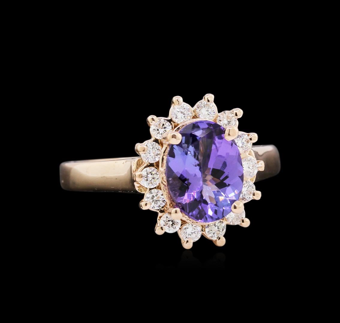 One ring featuring: 14KT rose gold weighing 4.64 grams containing one tanzanite with a total weight of 1.55ct and diamonds with a total weight of 0.35ct.