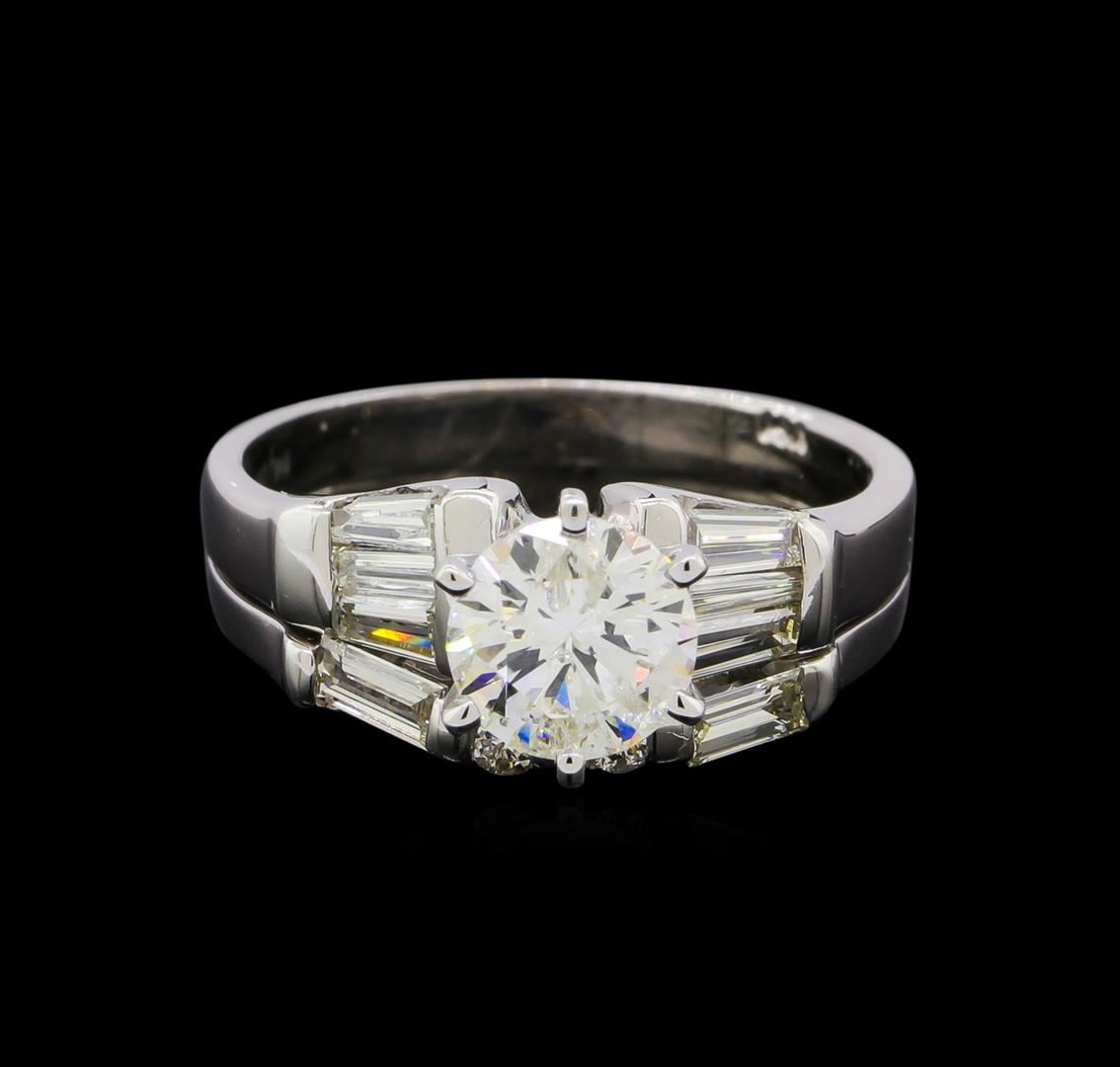 One 14KT white gold lady's ring weighing 4.95 grams containing one center round brilliant cut diamond with SI3 clarity and G color weighing 1.01ct and surround round and baguette cut diamonds with SI clarity and G-H color weighing 0.55ctw. RBGS Appraised at $12,400.00.