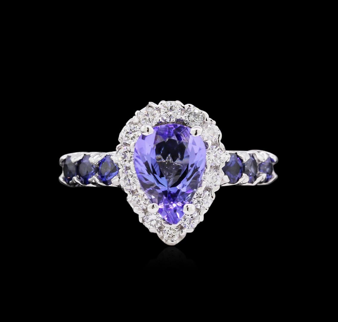 One ring featuring: 14KT white gold weighing 4.75 grams containing one tanzanite with a total weight of 1.57ct and 6 blue sapphires with a total weight of 0.60ct and diamonds with a total weight of 0.35ct.