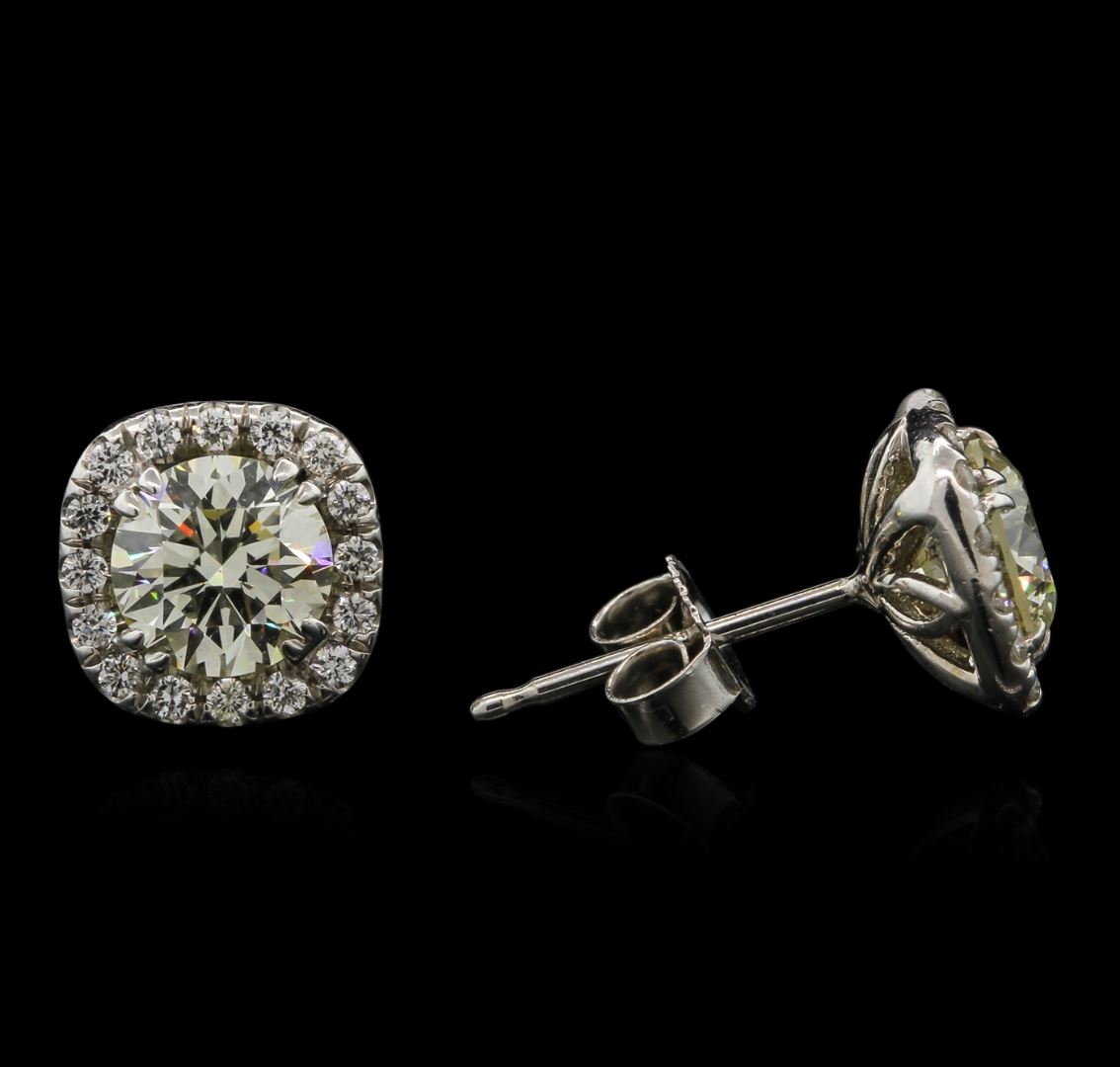 One pair of stud earrings featuring: 14KT white gold weighing 2.02 grams containing diamonds with a total weight of 1.57ct.