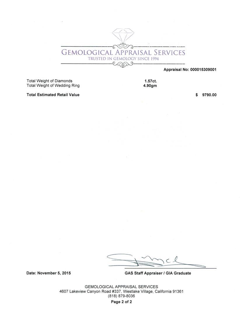Regarding Appraised Jewelry, Watches and Loose Stones –