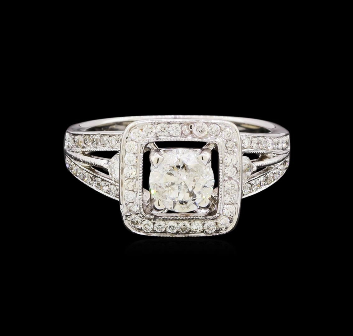 One electronically tested 18KT white gold lady's combination cast & assembled split shank halo wedding ring with a bright polish with milgrain detailing finish. The featured lady's ring has a shank measuring 2.0 millimeters in width. Trademark is ODELIA. Identified with markings of "18K". Condition is new, good workmanship. Containing: One prong set round brilliant cut diamond, measuring 5.52 - 5.48 x 3.48mm (depth est.) , 8.00.%. GTCF approximate weight of 0.71ct. Graded in the setting. Clarity: I-1. Color: G - Good Two prong set round brilliant cut diamonds, measuring 2.70 - 2.60 x 1.67mm (depth est.) approximate total weight of 2 Stones = 0.15ct. Graded in the setting. Clarity: VS-2 to SI-1. Color: G - Very Good Seventy-Six prong set round brilliant cut diamonds, measuring 1.40 - 1.30 x 0.84mm (depth est.) approximate total weight of 76 Stones = 0.72ct. Graded in the setting. Clarity: SI-1 to SI-2. Color: H - I. Cut Good. Total Weight of Diamonds 1.58ct. Total Weight of Ring 4.70gm. GAS Appraised at $7,340.00.