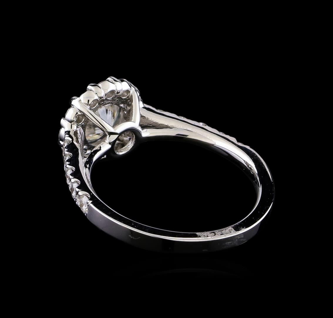One electronically tested 14KT white gold lady's cast wedding ring with a cathedral halo with a bright polish finish. The featured lady's ring has a shank measuring 1.92 millimeters in width. Identified with markings of "14K". Condition is new, good workmanship. Containing: One prong set round brilliant cut diamond, measuring 6.17 - 6.13 x 4.04mm (depth est.) , 5.00.%. GTCF approximate weight of 1.00 ct. Graded in the setting. Clarity: I-1. Color: G - Very Good Ten prong set round brilliant cut diamonds, measuring 2.00 - 1.95 x 1.25mm (depth est.) approximate total weight of 10 Stones = 0.30 ct. Graded in the setting. Clarity: SI-1 to SI-2. Color: H - I. Cut Good Twelve prong set round brilliant cut diamonds, measuring 1.90 - 1.85 x 1.15mm (depth est.) approximate total weight of 12 Stones = 0.30 ct. Graded in the setting. Clarity: SI-1 to I-1. Color: H - I. Cut Good. Total Weight of Diamonds 1.60 ct. Total Weight of Ring 3.70gm. GAS Appraised.