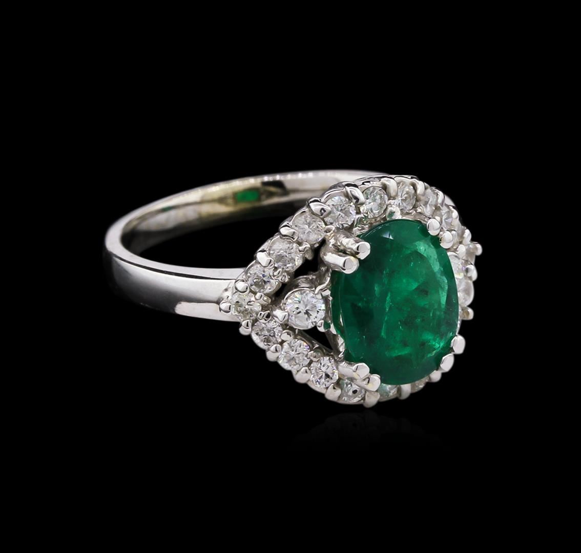 One 18KT White Gold ring 4.89 GR. Including: one center oval cut natural emerald TW: 1.60 CTS 9 x 7 MM. 0.44 CTS round cut diamonds. All VS-SI Clarity, G-H Color. Fine Cutting and Proportions. RBGS Appraised at $45,000.00.
