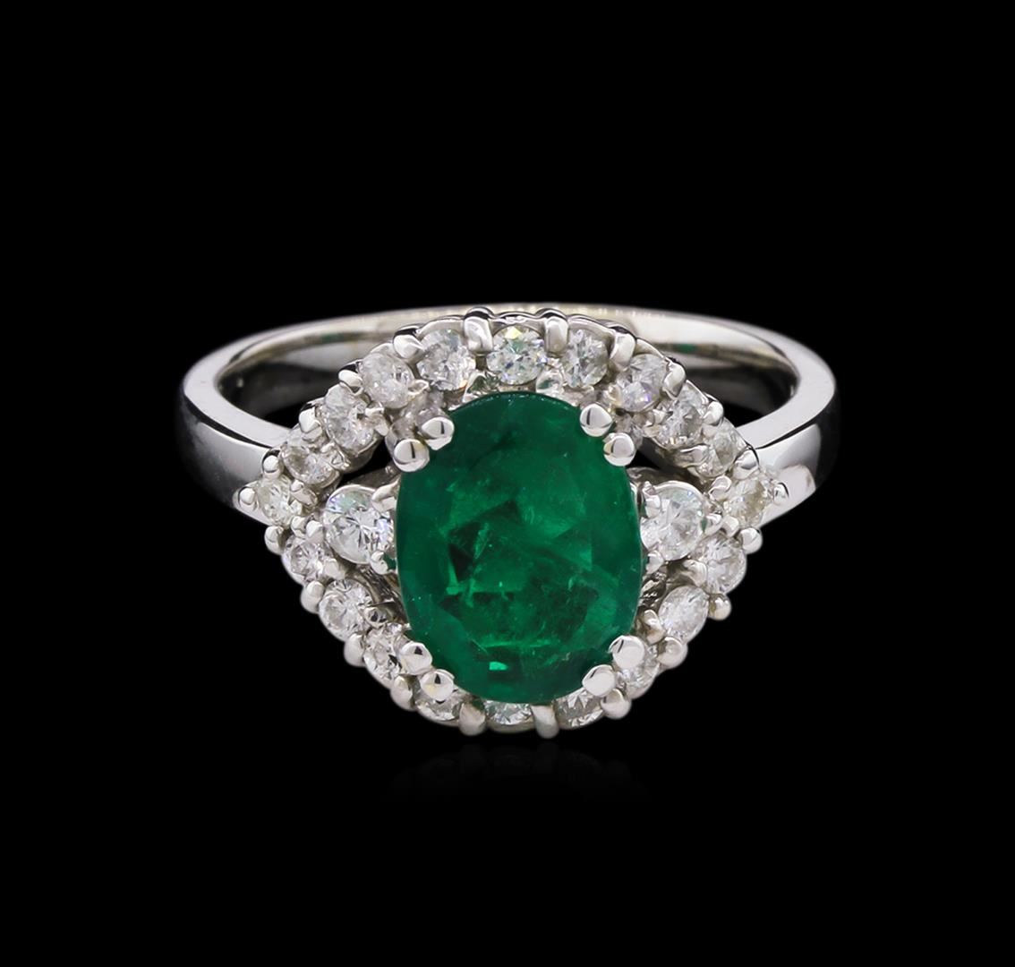 One 18KT White Gold ring 4.89 GR. Including: one center oval cut natural emerald TW: 1.60 CTS 9 x 7 MM. 0.44 CTS round cut diamonds. All VS-SI Clarity, G-H Color. Fine Cutting and Proportions. RBGS Appraised at $45,000.00.