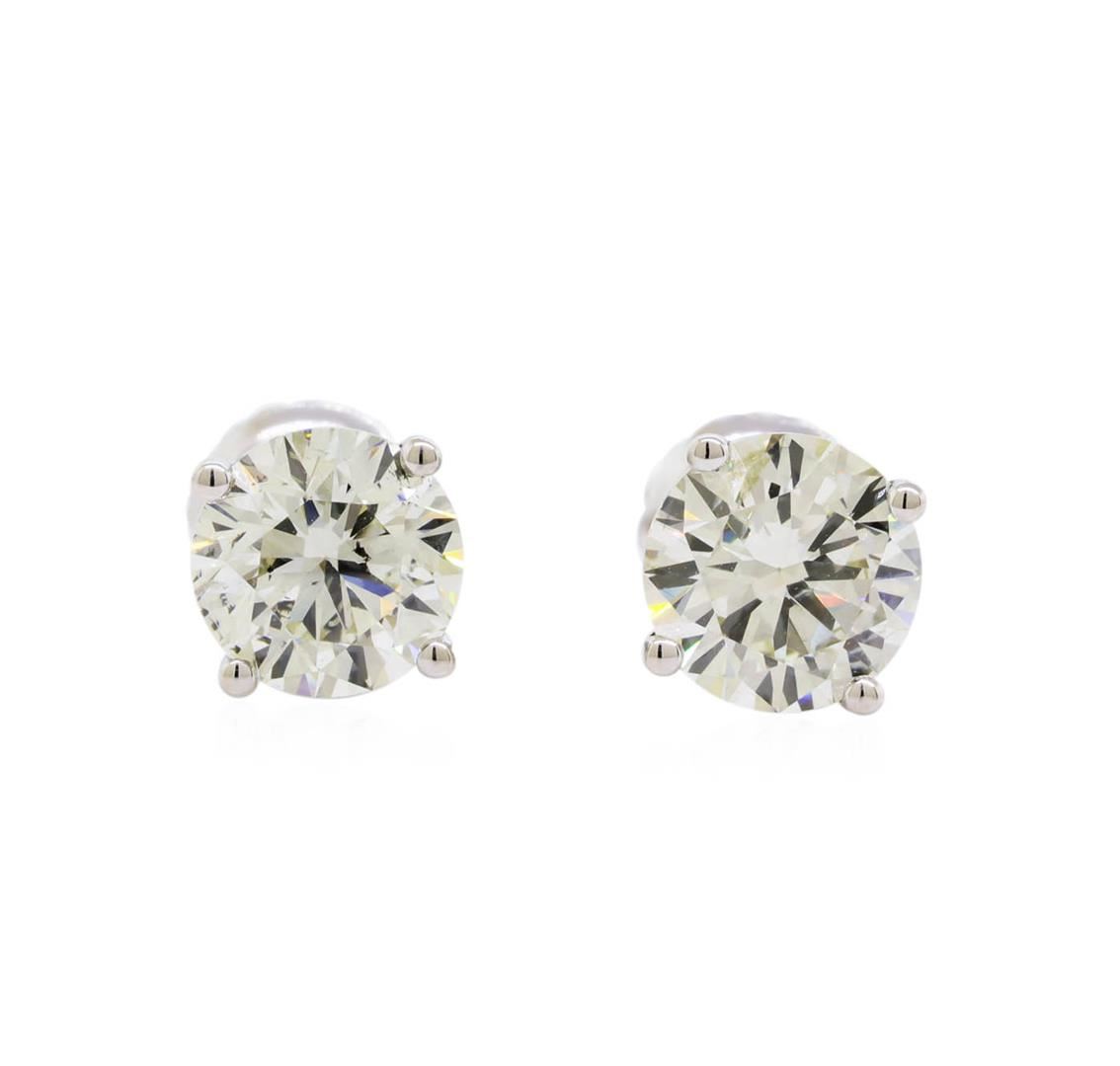 One pair electronically tested 14KT white gold lady's combination cast & assembled stud earrings with threaded posts and screw-on/screw-off backs with a bright polish finish. Identified with markings of "14K". Condition is new, good workmanship. Containing: Two prong set round brilliant cut diamonds, measuring 6.07 - 5.90 x 3.65mm (depth est.) approximate total weight of 2 Stones = 1.60ct. Graded in the setting. Clarity: SI-1. Color: I - Very Good. Total Weight of Diamonds 1.60ct. Total Weight of Earrings 1.20gm. GAS Appraised at $13,625.00.