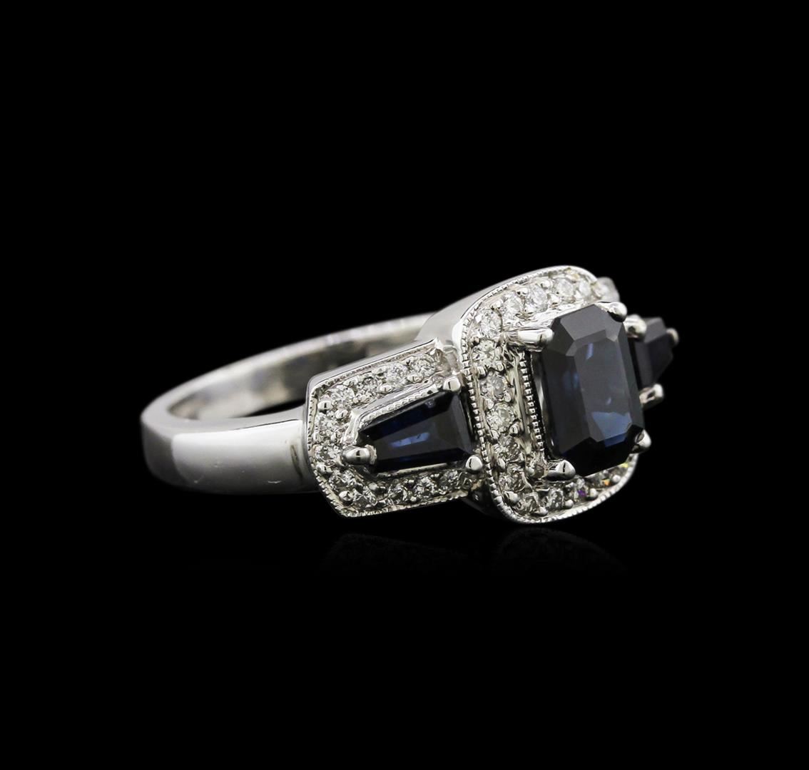 One ring featuring: 14KT white gold weighing 5.54 grams containing three sapphires with a total weight of 1.60ct and diamonds with a total weight of 0.42ct.