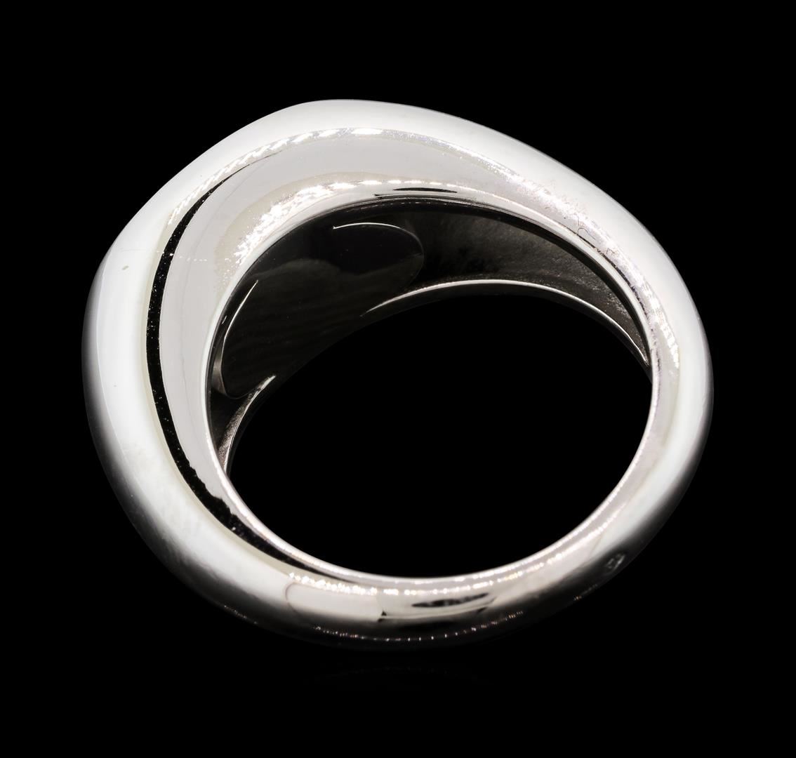One electronically tested 18KT white gold lady's cast fashion ring with a tapered shank with a bright polish finish. The featured lady's ring has a shank measuring 3.35 millimeters wide. Trademark is Mauboussin. Identified with markings of '750'. Conditio GAS Appraised at $13,815.00.
