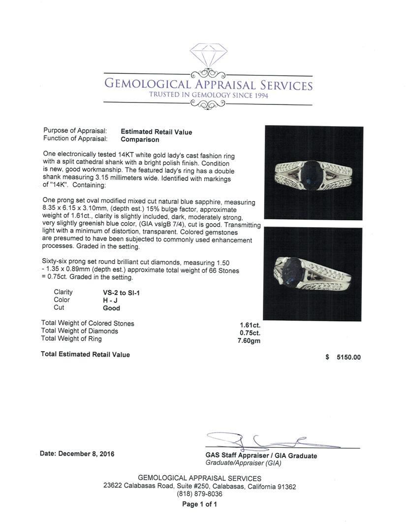 One electronically tested 14KT white gold lady's cast fashion ring with a split cathedral shank with a bright polish finish. The featured lady's ring has a double shank measuring 3.15 millimeters wide. Identified with markings of '14K'. Condition is new,