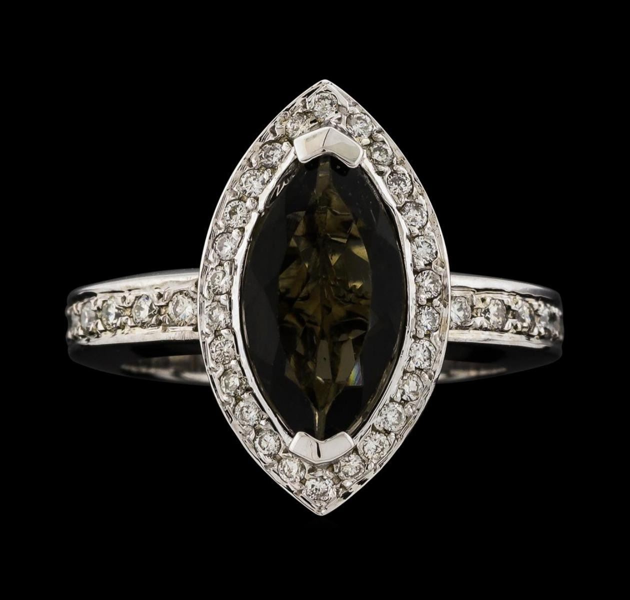 One ring : 14KT white gold weighing 8.28gm containing tourmaline with a total weight of 1.61ctw and side diamonds weighing 0.52ctw.