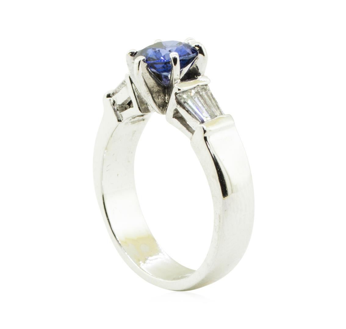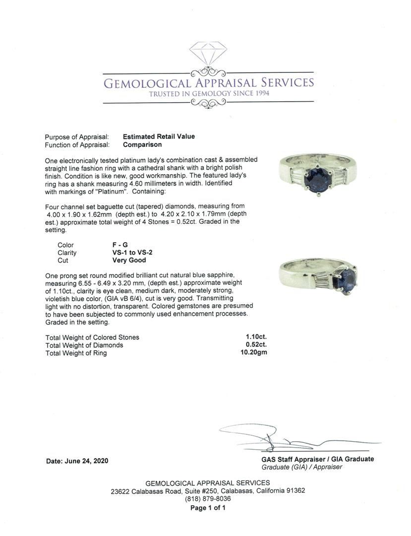 One electronically tested platinum lady's combination cast & assembled straight line fashion ring with a cathedral shank with a bright polish finish. The featured lady's ring has a shank measuring 4.60 millimeters in width. Identified with markings of 'Pl