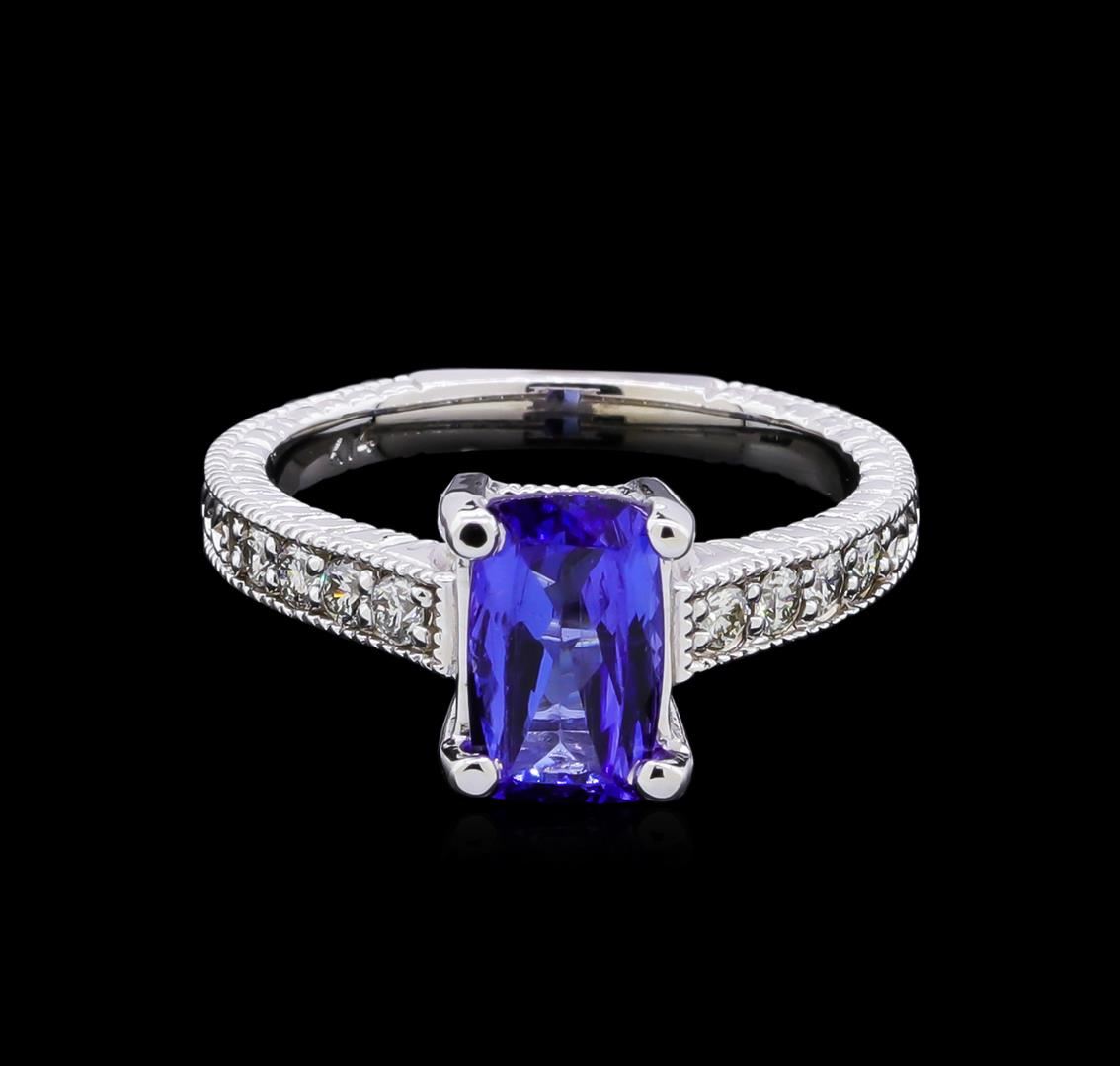 One ring featuring: 14KT white gold weighing 4.50 grams containing one tanzanite with a total weight of 1.63ct and side diamonds with a total weight of 0.26ct.