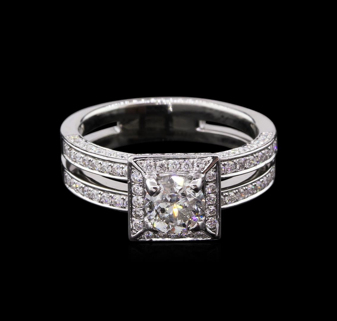 One electronically tested 14KT white lady's combination cast & assembled split shank square halo wedding ring with a bright polish finish. The featured lady's ring has a shank measuring 4.60 millimeters in width. Condition is new, good workmanship. Containing: One prong set round brilliant cut diamond, measuring 5.58 - 5.56 x 3.84mm (depth est.) , 5.00% GTCF approximate weight of 0.78ct. Graded in the setting. Clarity: I-1. Color: Very Good Seventy-Two bead set round brilliant cut diamonds, measuring 1.30 - 1.20 x 0.81mm (depth est.) approximate total weight of 72 Stones = 0.55ct. Graded in the setting. Clarity: SI-1 to SI-2. Color: G - I. Cut Very Good Forty-Eight bead set round brilliant cut diamonds, measuring 1.20 - 1.10 x 0.75mm (depth est.) approximate total weight of 48 Stones = 0.30ct. Graded in the setting. Clarity: SI-1 to SI-2. Color: G - Very Good. Total Weight of Diamonds 1.63ct. Total Weight of Wedding Ring 6.40gm GAS Appraised at $10,115.00.