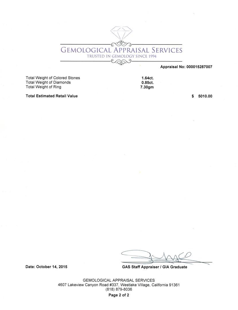 Not all Jewelry, watches or loose stones are appraised and the appraisals are provided for bidders only in certain instances at the discretion of SAA. Our appraisals are conducted by independent third-party appraisal firms. Such firms may be certified GIA Gemologists or have education in the industry or alternative certifications. Appraisals should be used for verification of gemstone and/or metal weight, size, and grade only, not actual value for resale or insurance purposes. Appraisal value should be not considered for actual value, as price varies greatly from retail locations and other merchants in different geographic locations. All Items auctioned by SAA should not be purchased with a view or expectation toward resale for appraisal price given, or to make a profit. The ultimate value for which an item can be resold may vary drastically from the appraisals listed by SAA.
