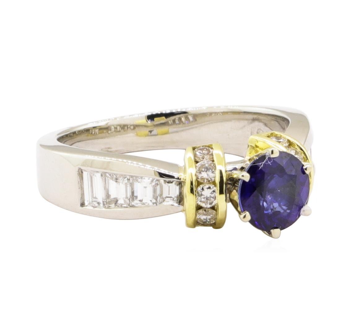 One electronically tested 18KT-platinum white and yellow gold lady's combination cast & assembled fashion ring with a pinched shank and cuff shoulders with a bright polish finish. The featured lady's ring has a shank measuring 2.75 millimeters wide. Ident